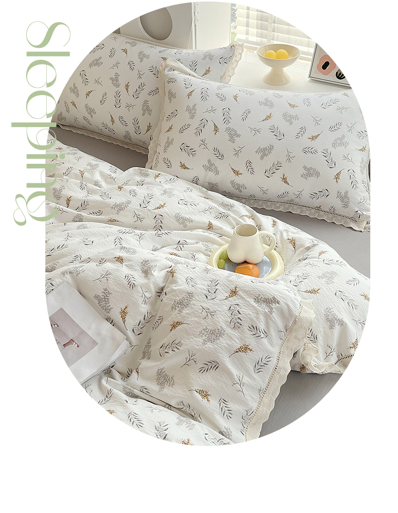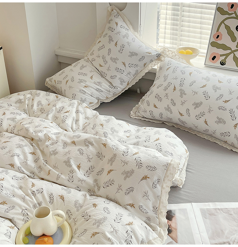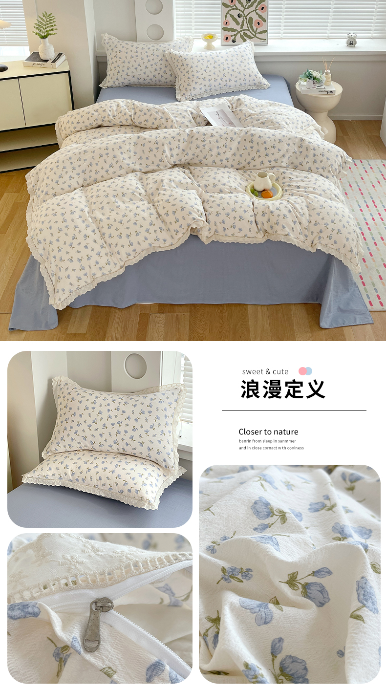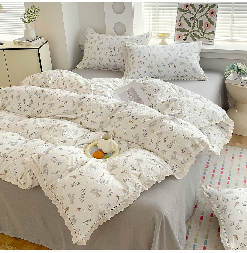 雨彤家纺 2025新款A类高克重云感皱皱双层纱全棉镂空花边款法式四件套-叠拍图 组合图