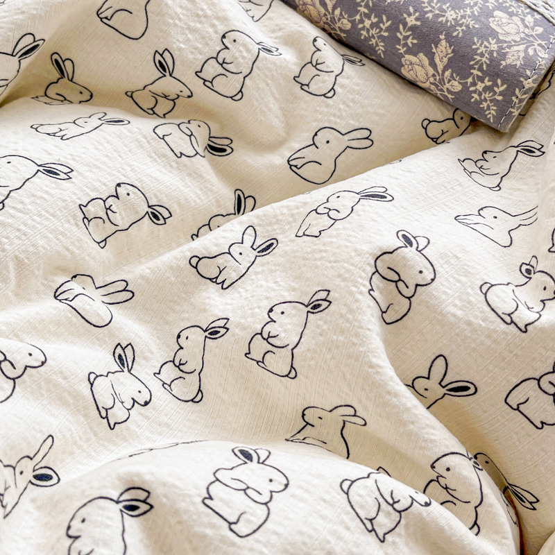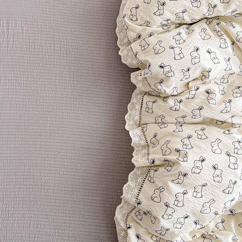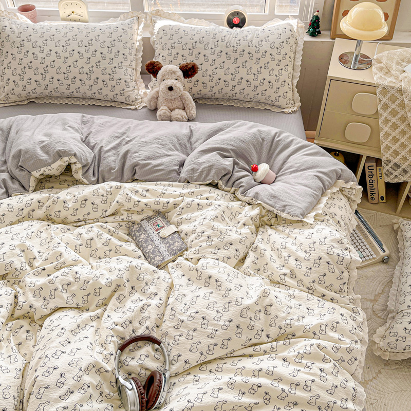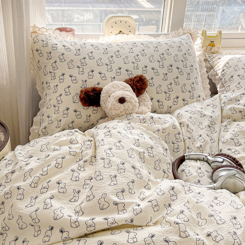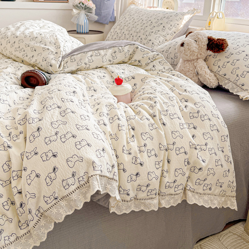 商品名称:仟网汇 2025新款云感皱皱双层纱全棉花边四件套 小黑兔