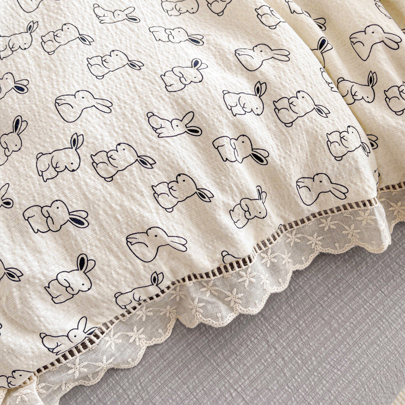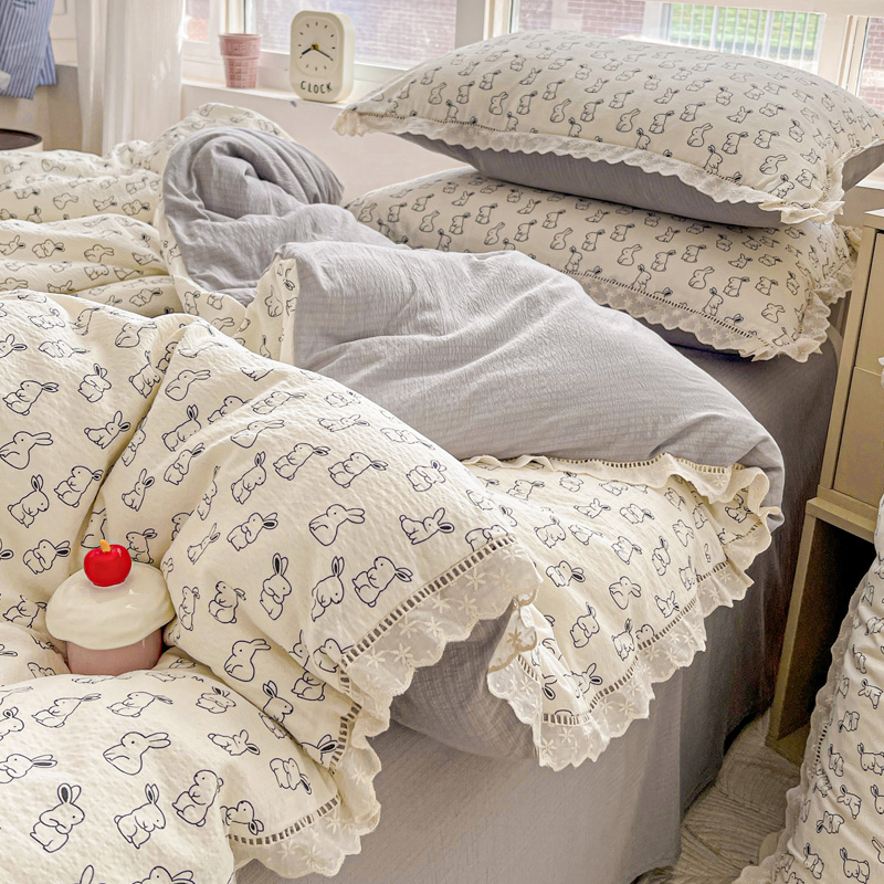 仟网汇 2025新款云感皱皱双层纱全棉花边四件套 小黑兔