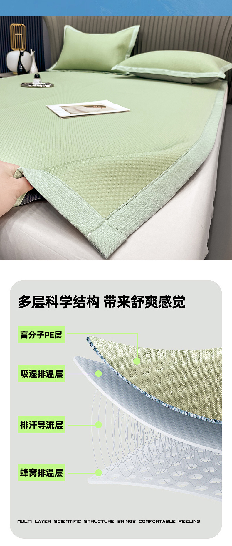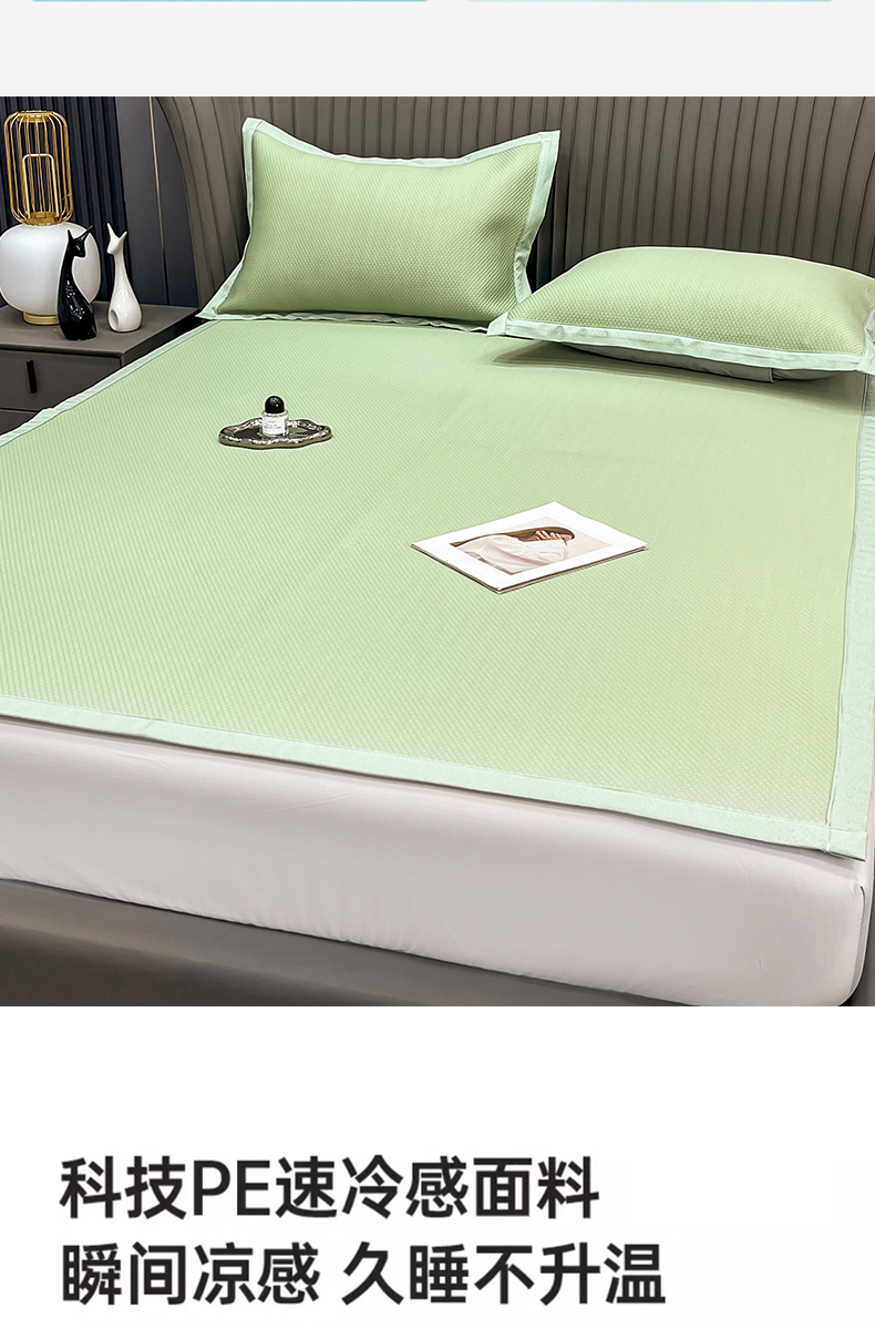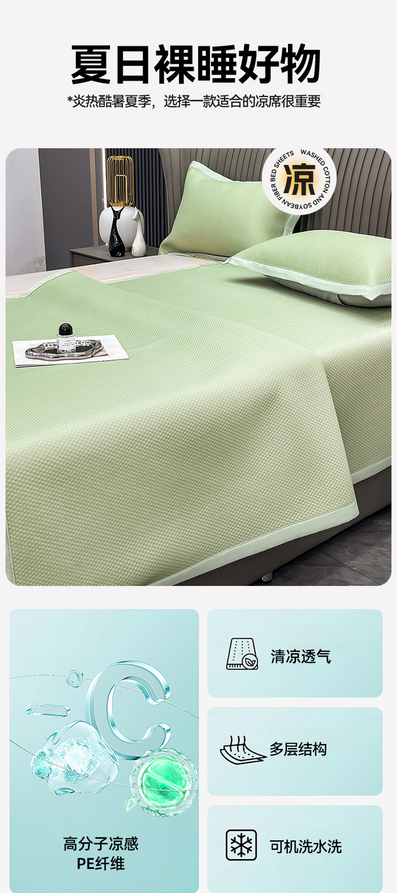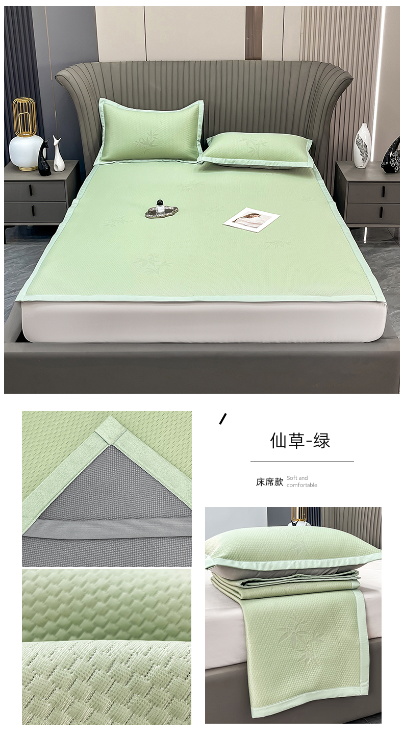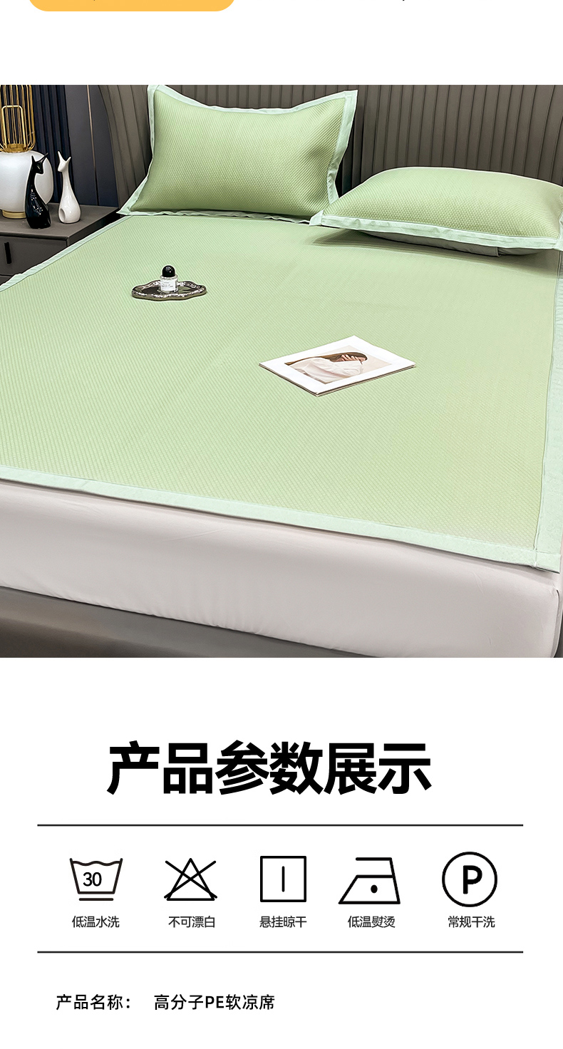 商品名称:瑞兴纺 2025新款高分子PE软凉席绣花款床单款 床单款-华夫格-绿