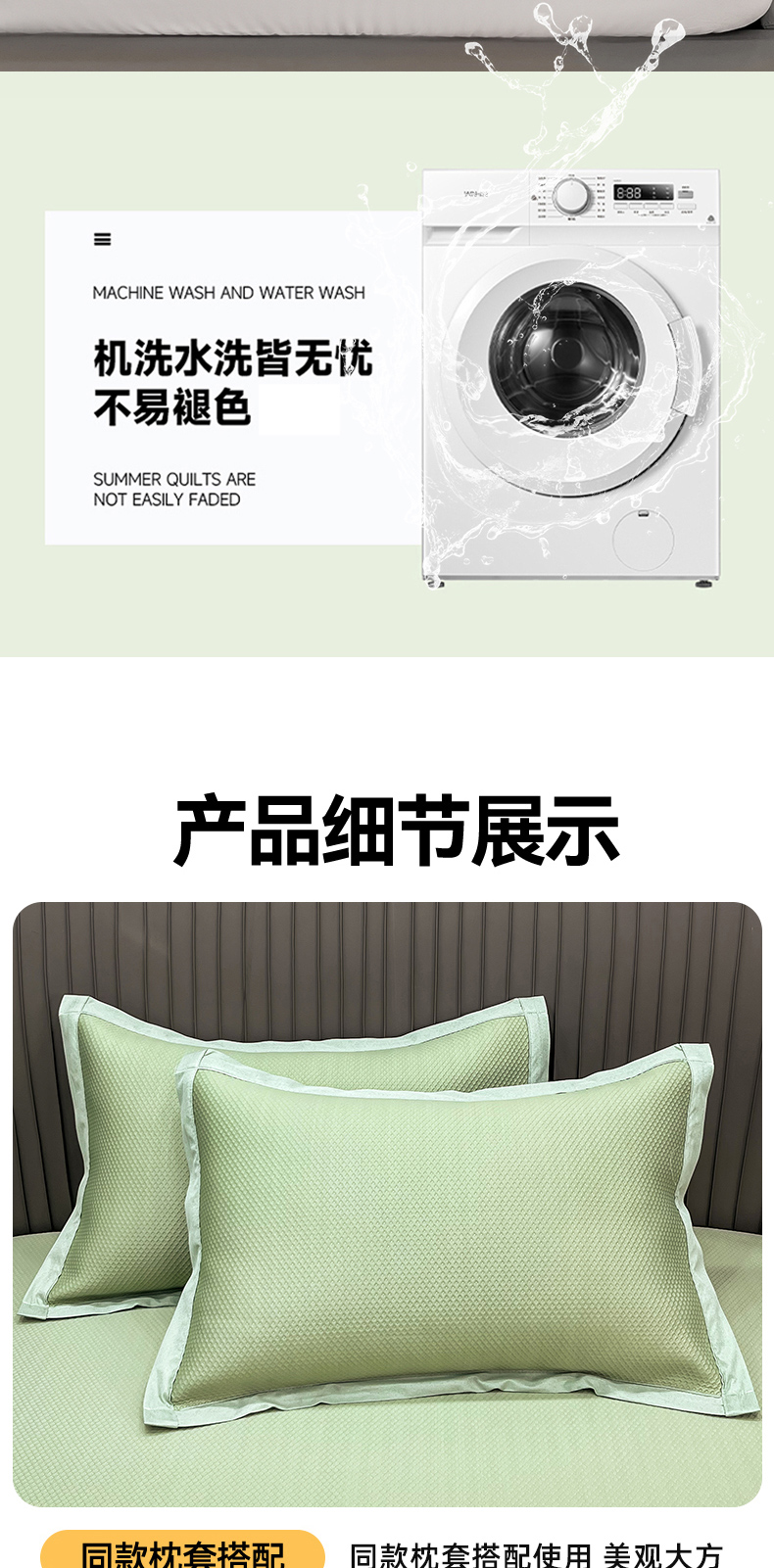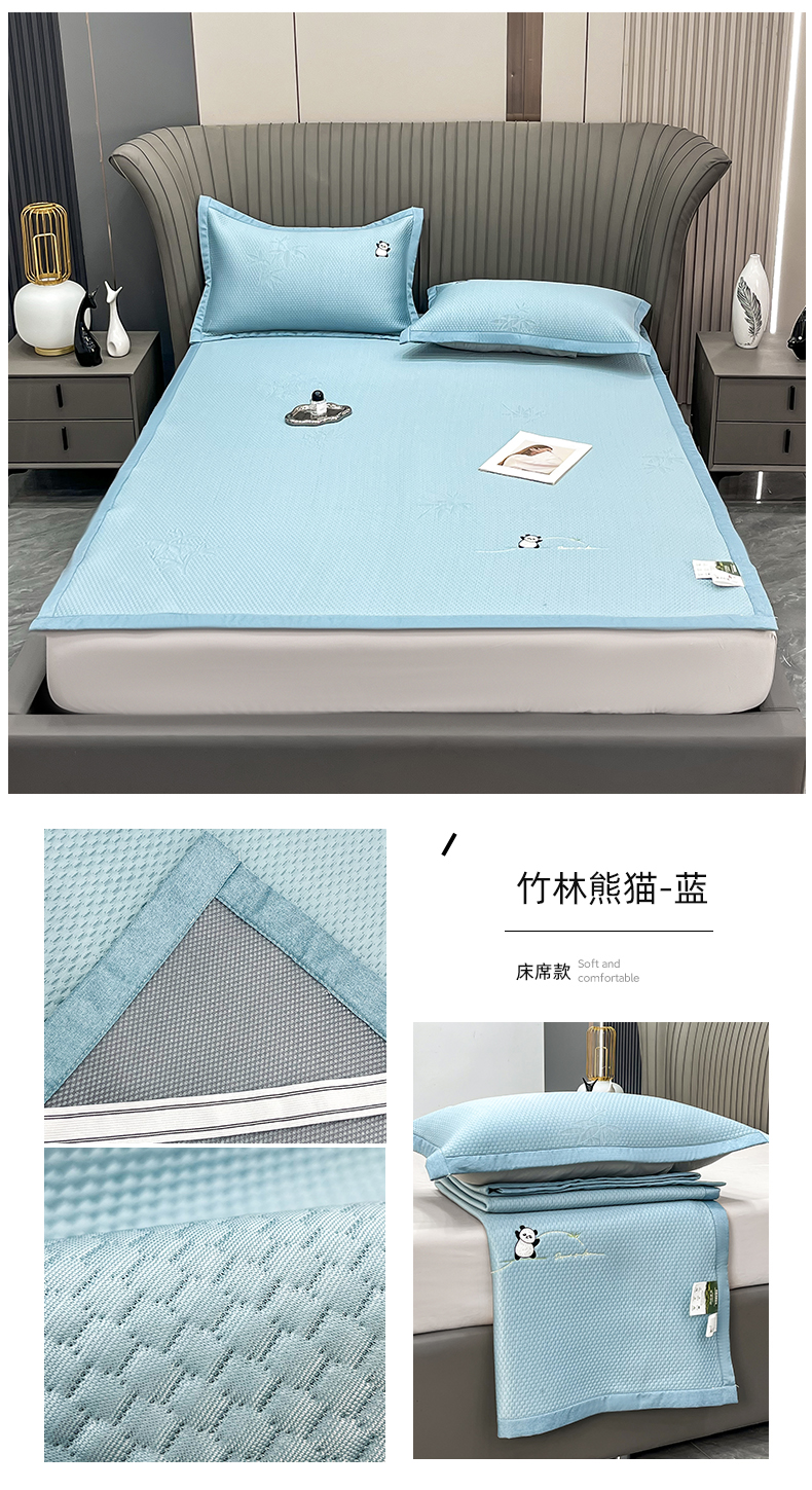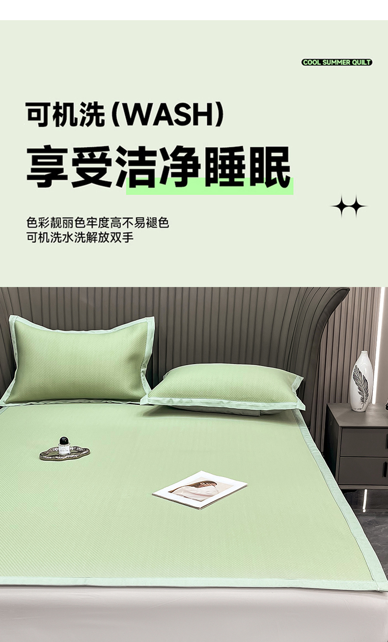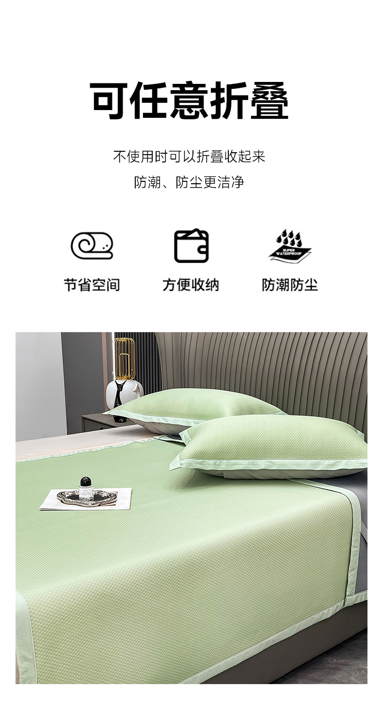 商品名称:瑞兴纺 2025新款高分子PE软凉席绣花款床单款 床单款-华夫格-绿