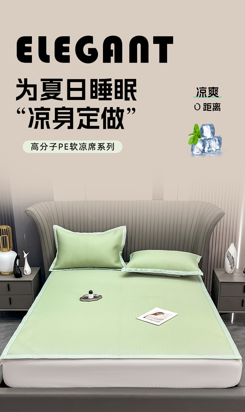 瑞兴纺 2025新款高分子PE软凉席绣花款床单款 床单款-华夫格-绿