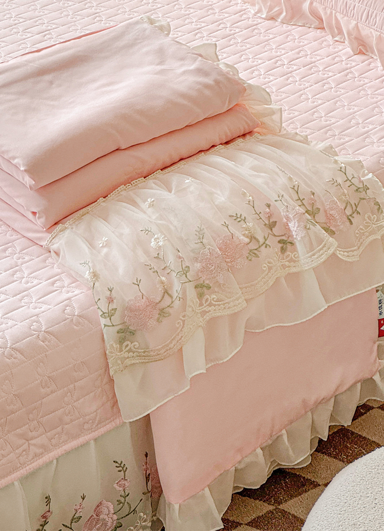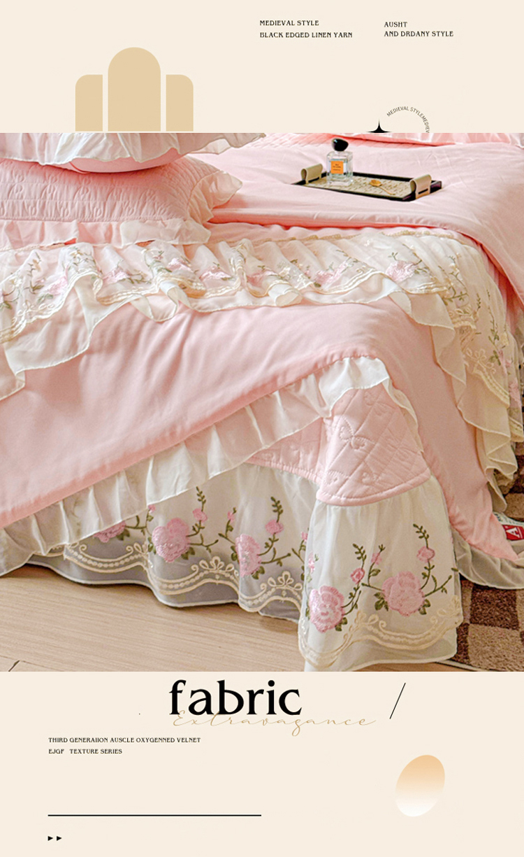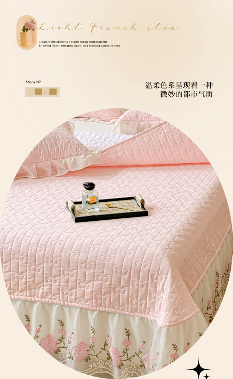 (总)漫布云2025春夏韩版公主风水洗棉蕾丝床盖款夏被四件套法式蕾丝花边床裙款四件套