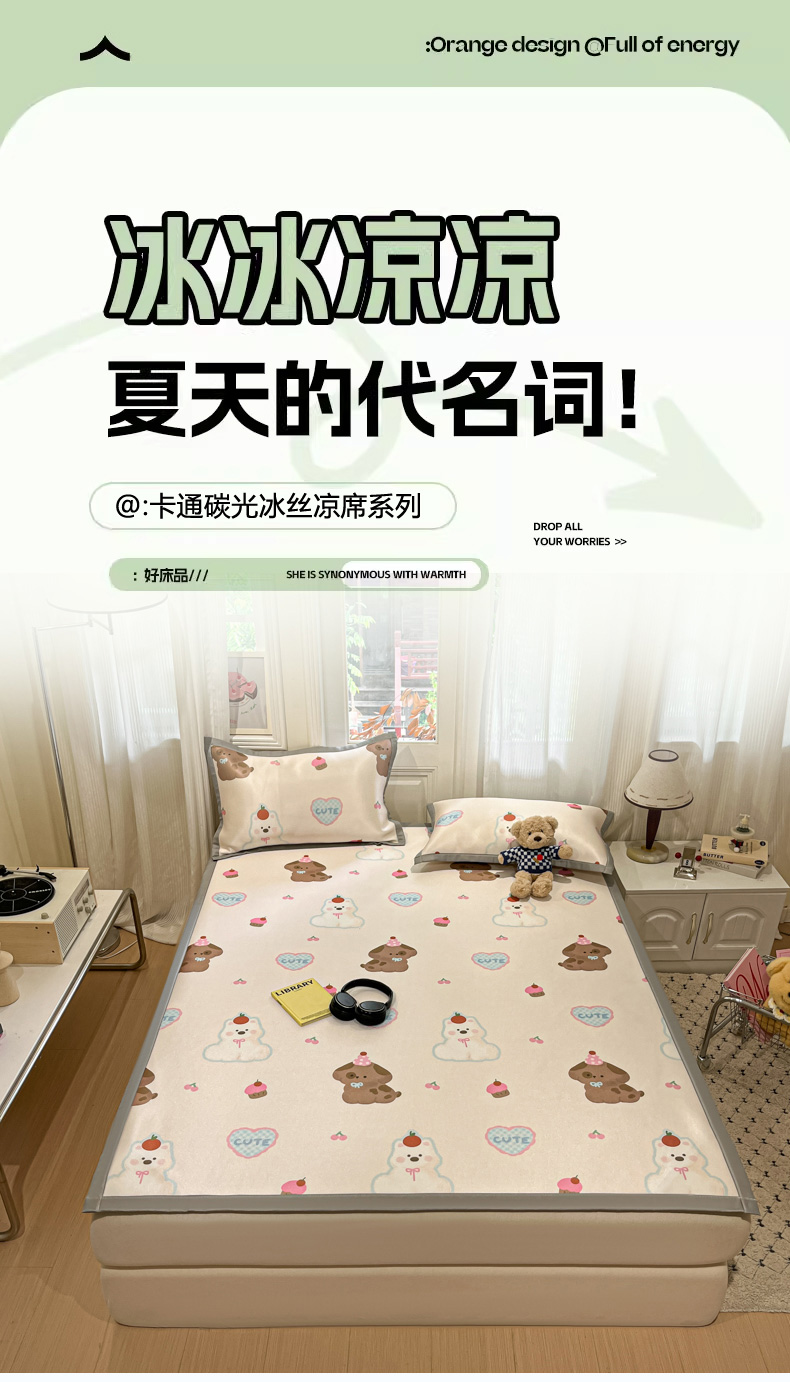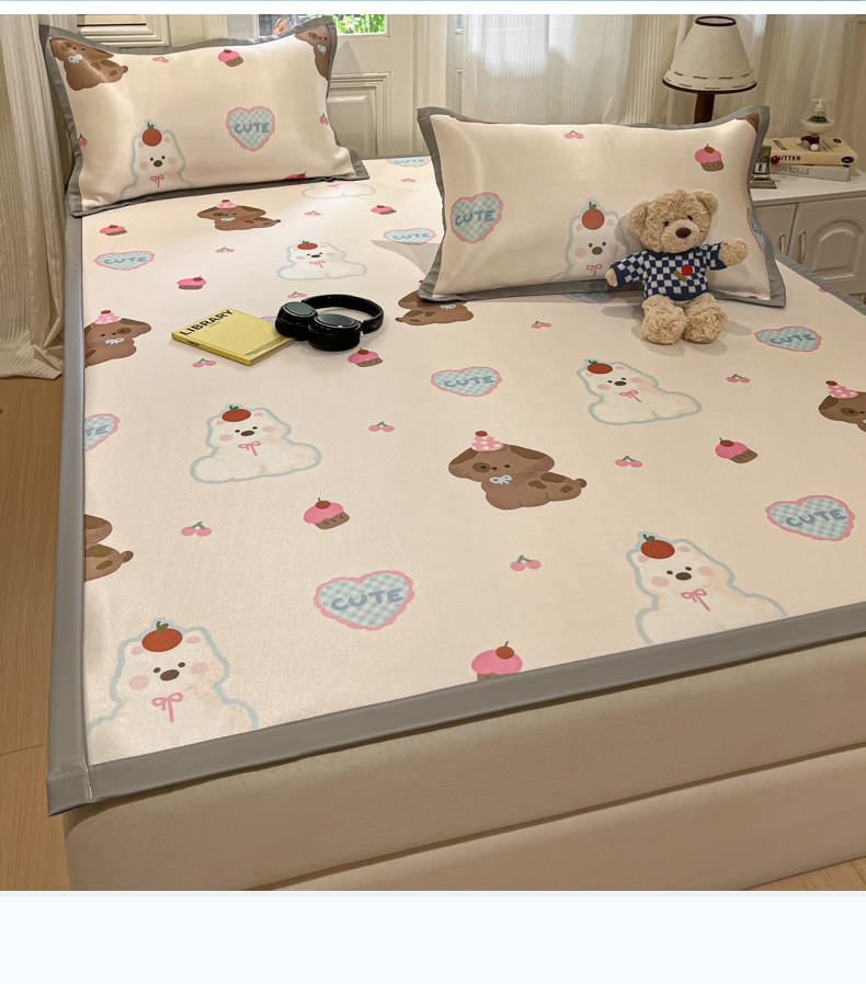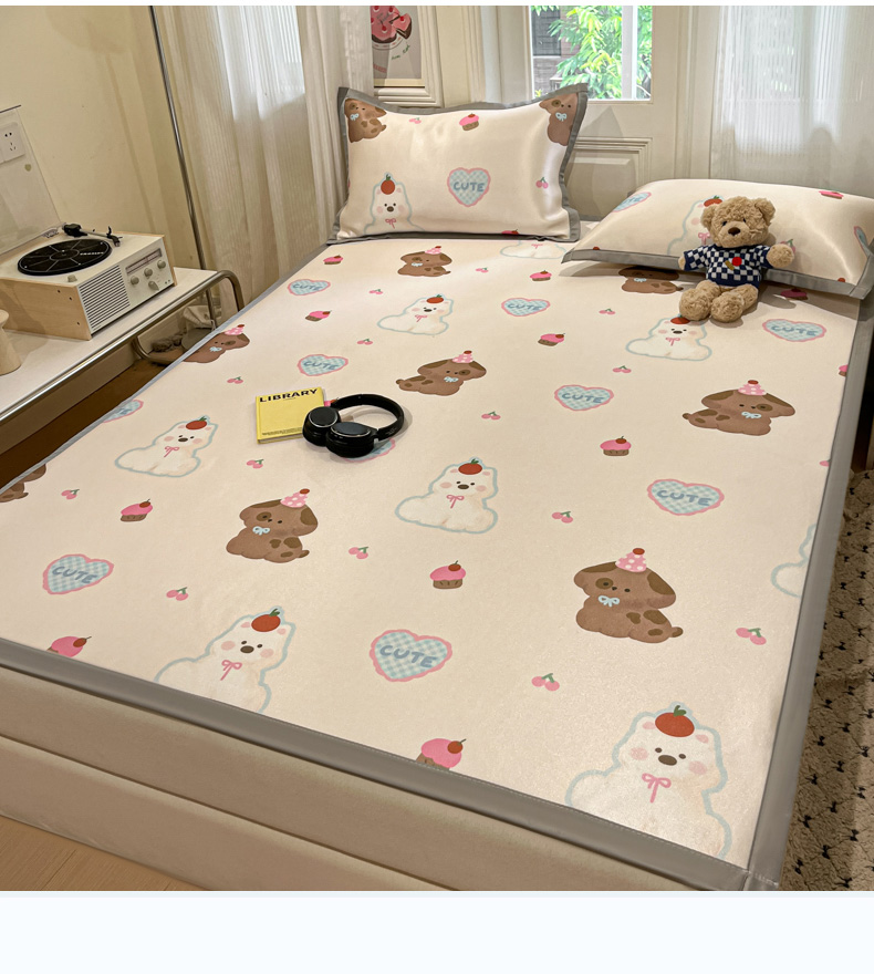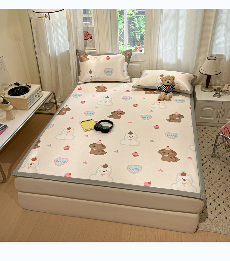 慕澄家纺 2025新款小清新萌宠系列碳光冰丝凉席 蛋糕甜心犬