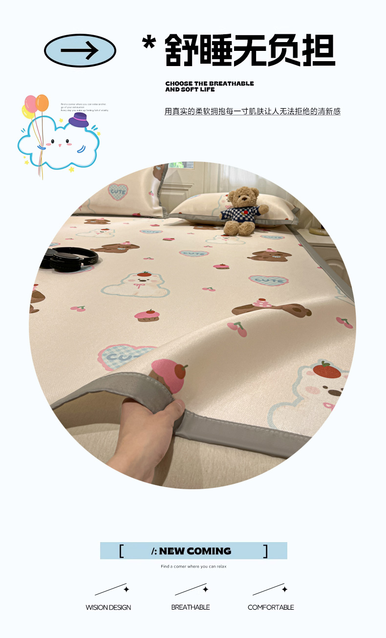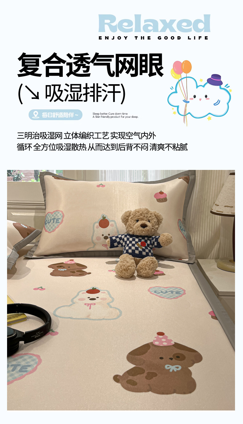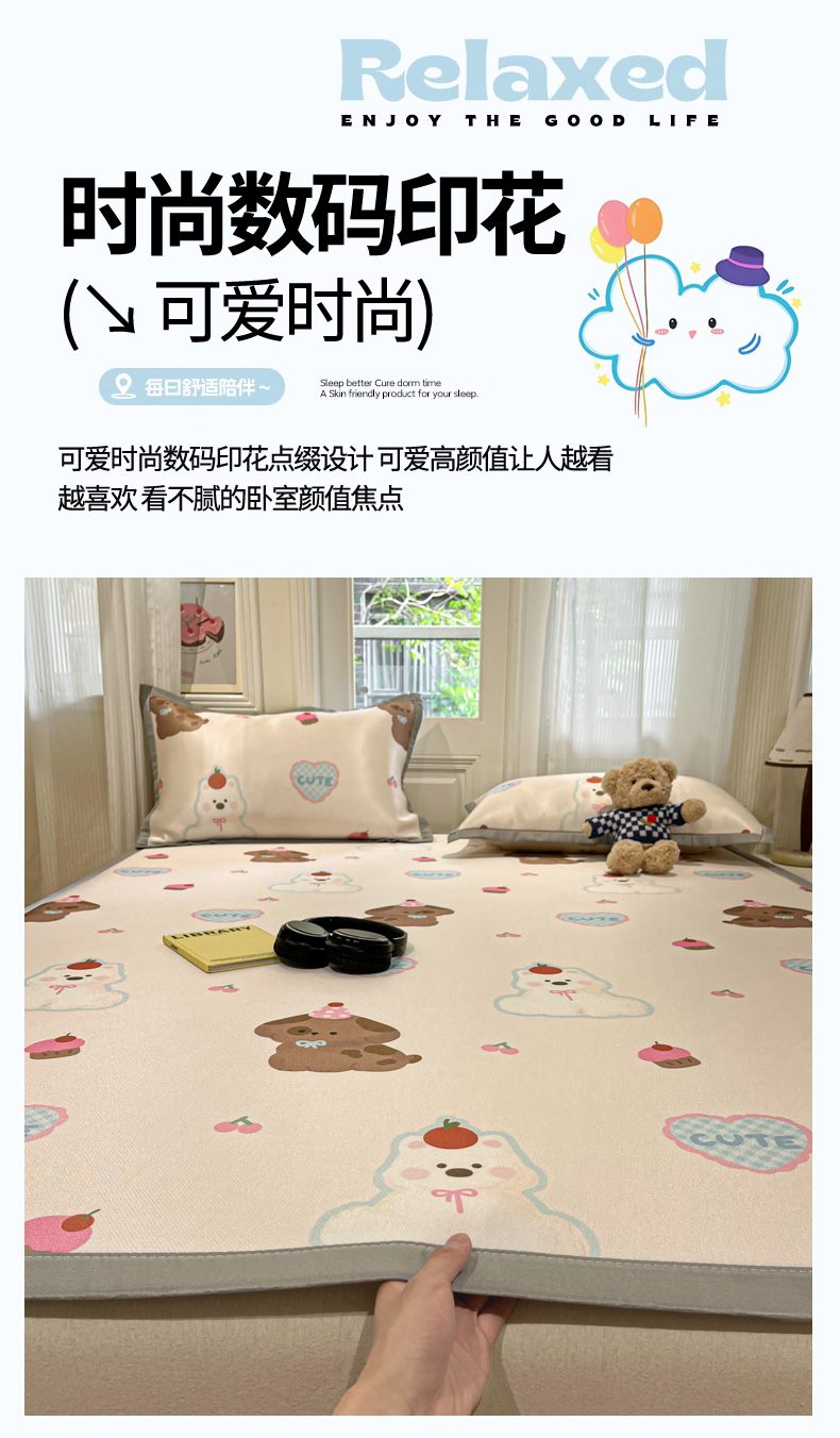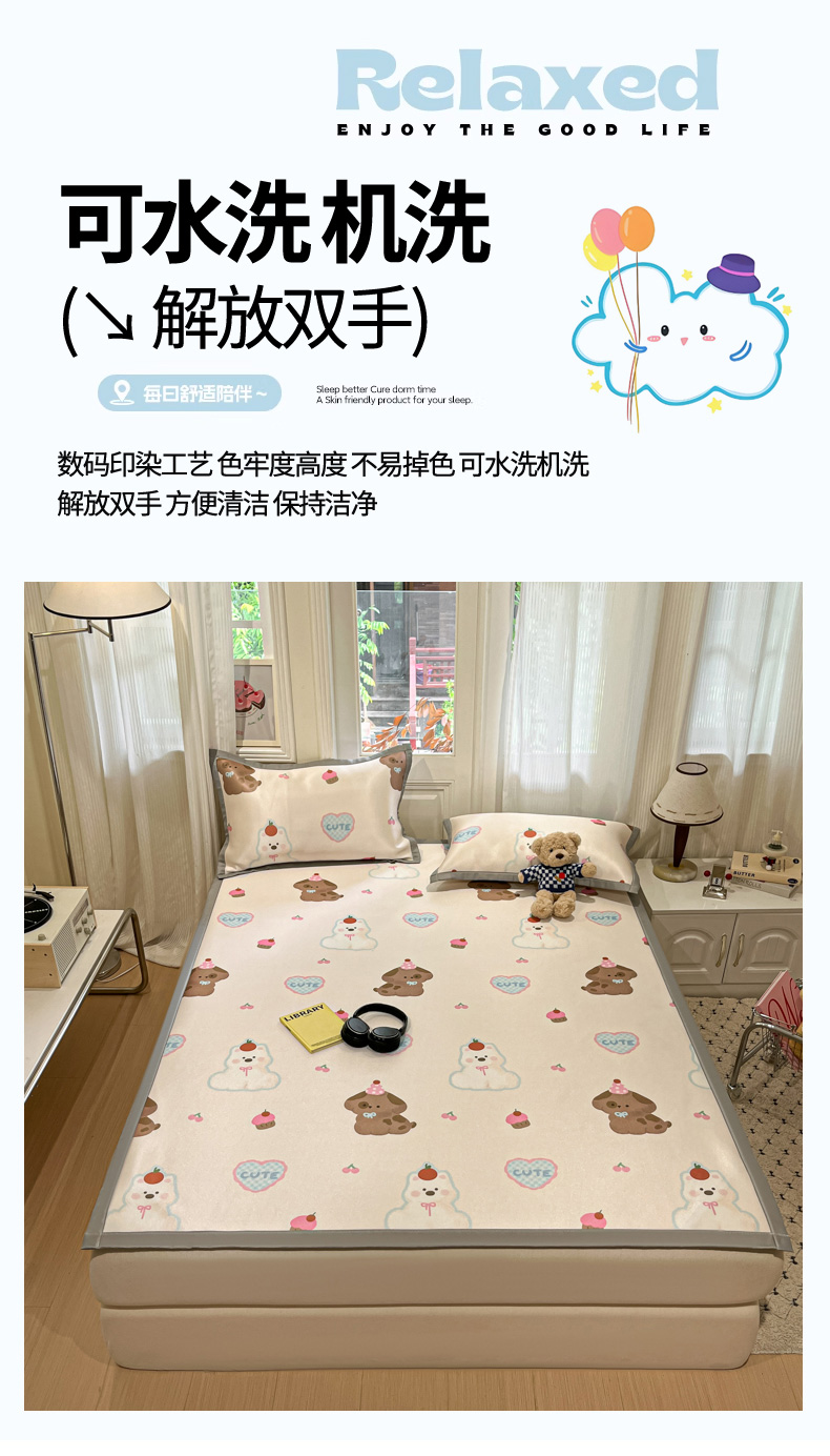 慕澄家纺 2025新款小清新萌宠系列碳光冰丝凉席 蛋糕甜心犬