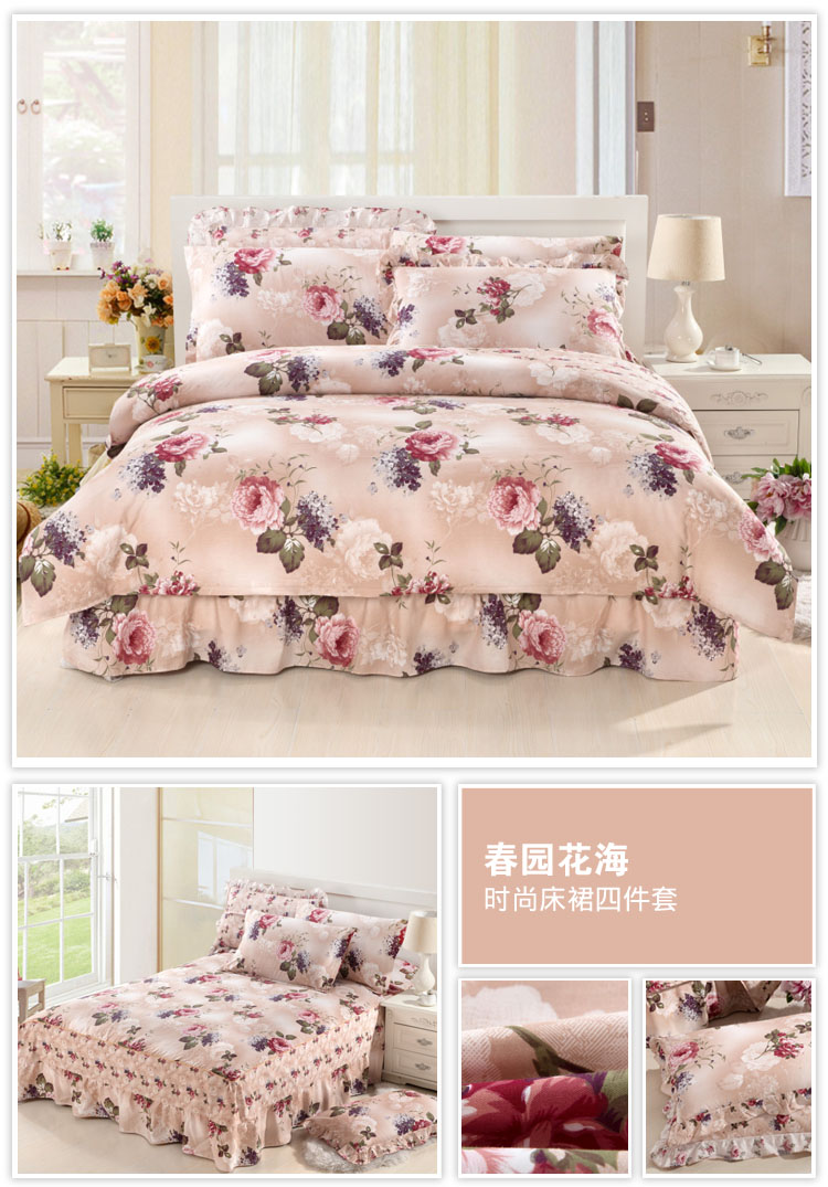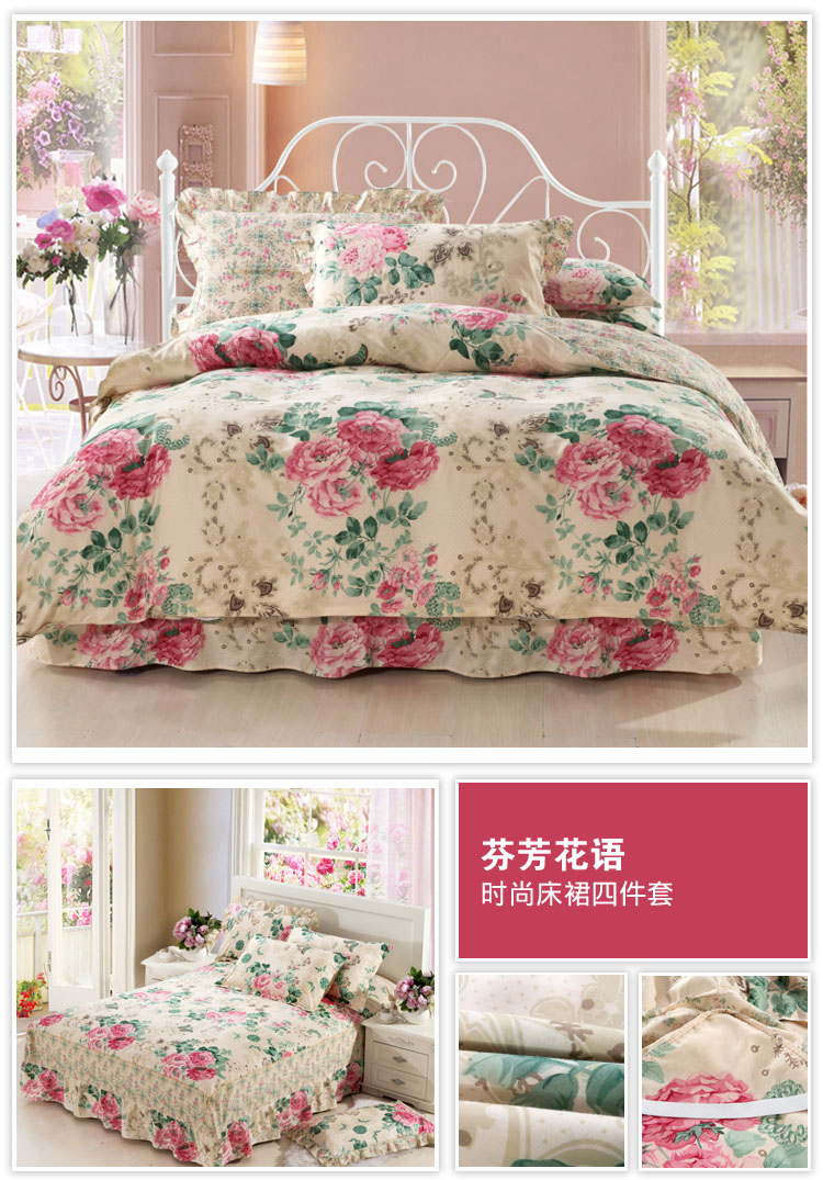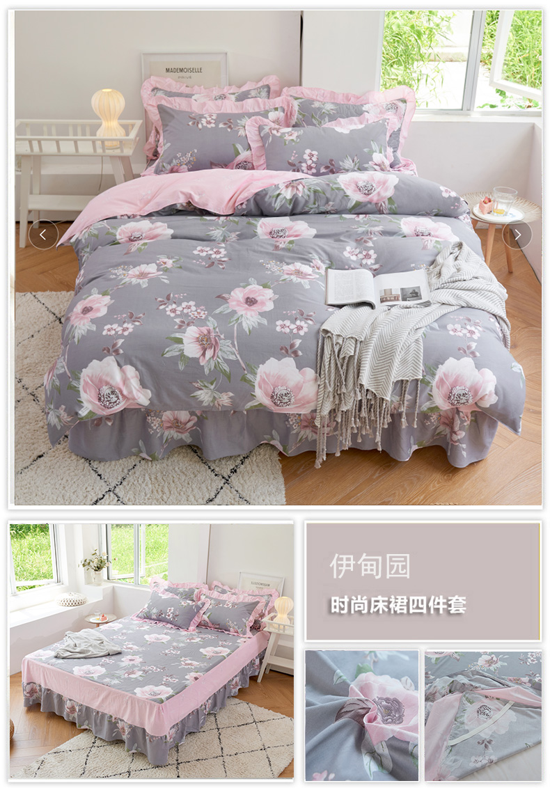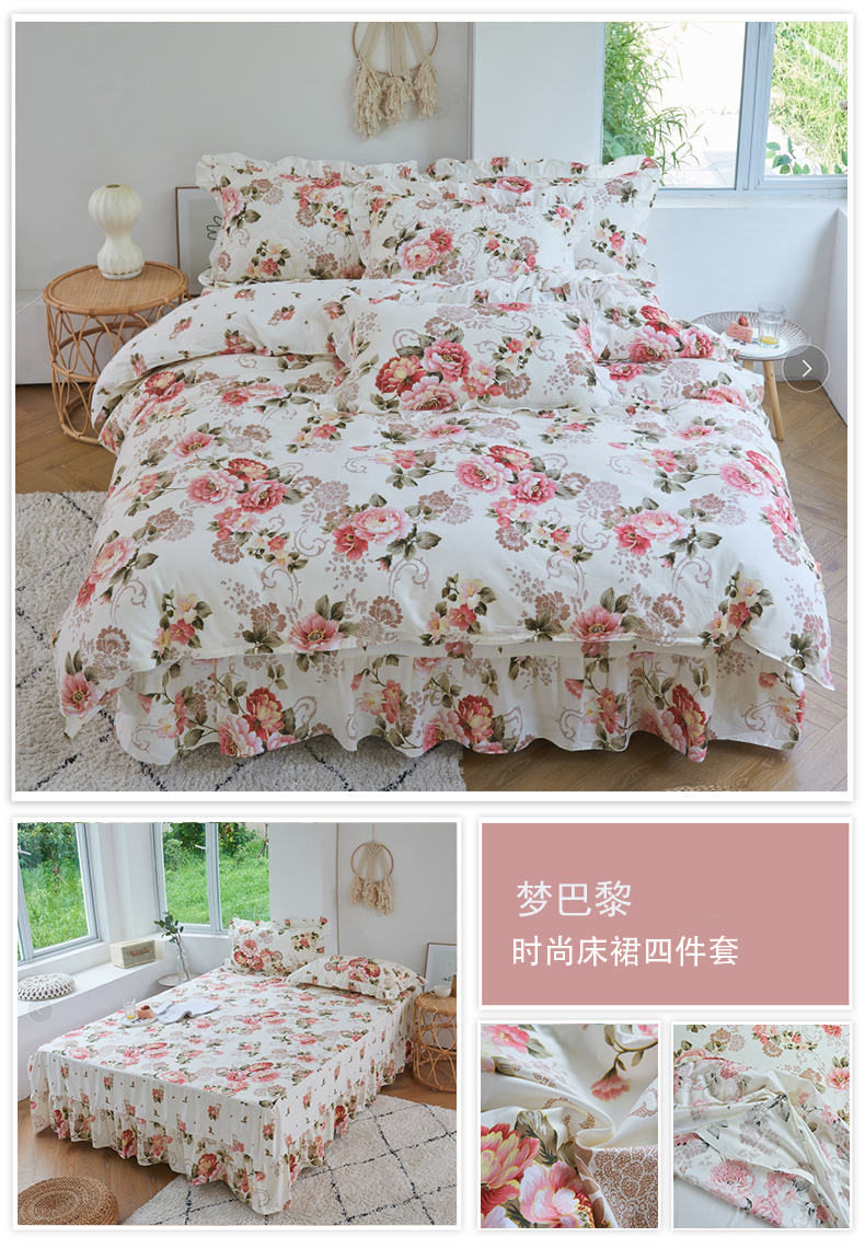 (总)2022新款40s全棉夹棉床裙四件套 (配双针被套),淡香伊人,恋情,罗兰粉,罗兰蓝,若水生花,夏花,向阳花开,小清新,新叶,叶之精灵,伊甸花海,柚子,冰兔,桃花粉,紫丁香