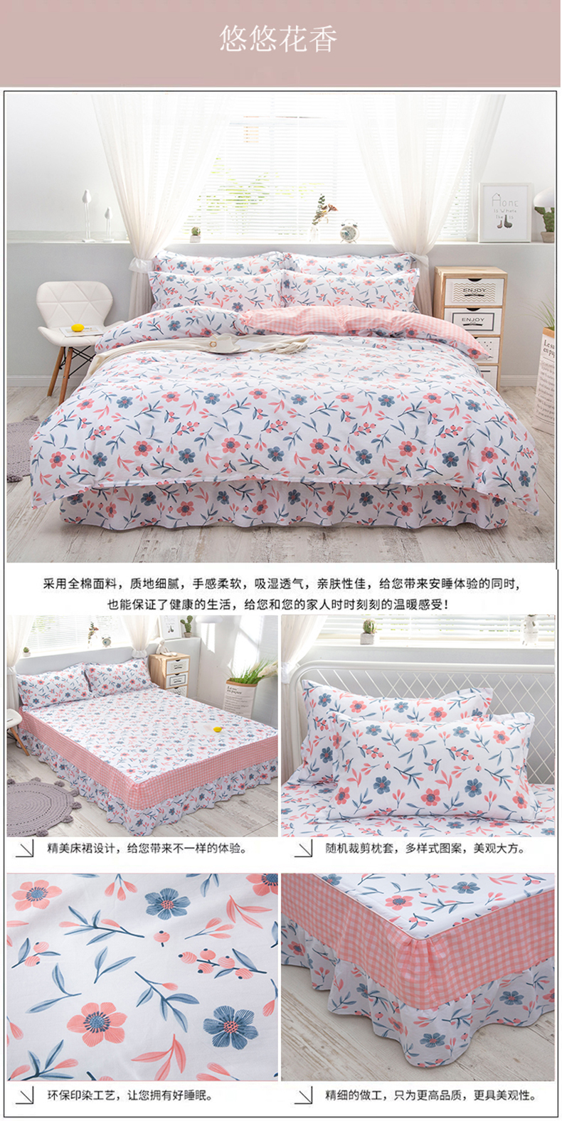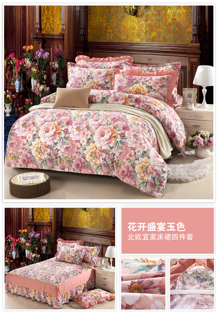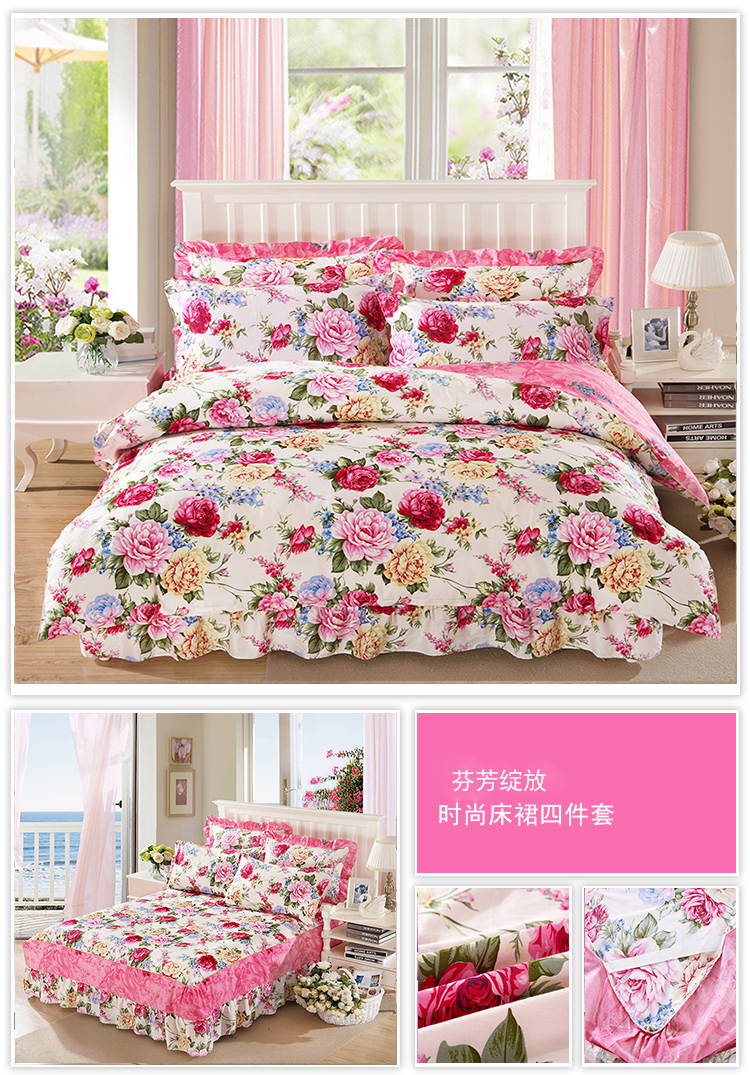 (总)2022新款40s全棉夹棉床裙四件套 (配双针被套),淡香伊人,恋情,罗兰粉,罗兰蓝,若水生花,夏花,向阳花开,小清新,新叶,叶之精灵,伊甸花海,柚子,冰兔,桃花粉,紫丁香