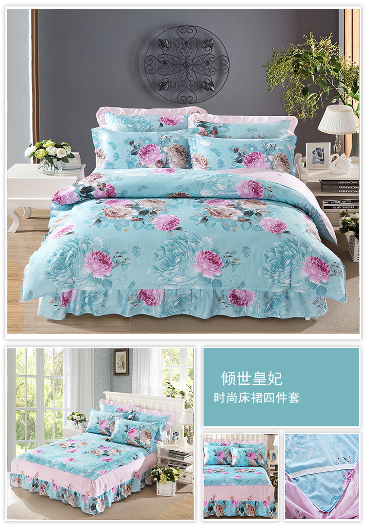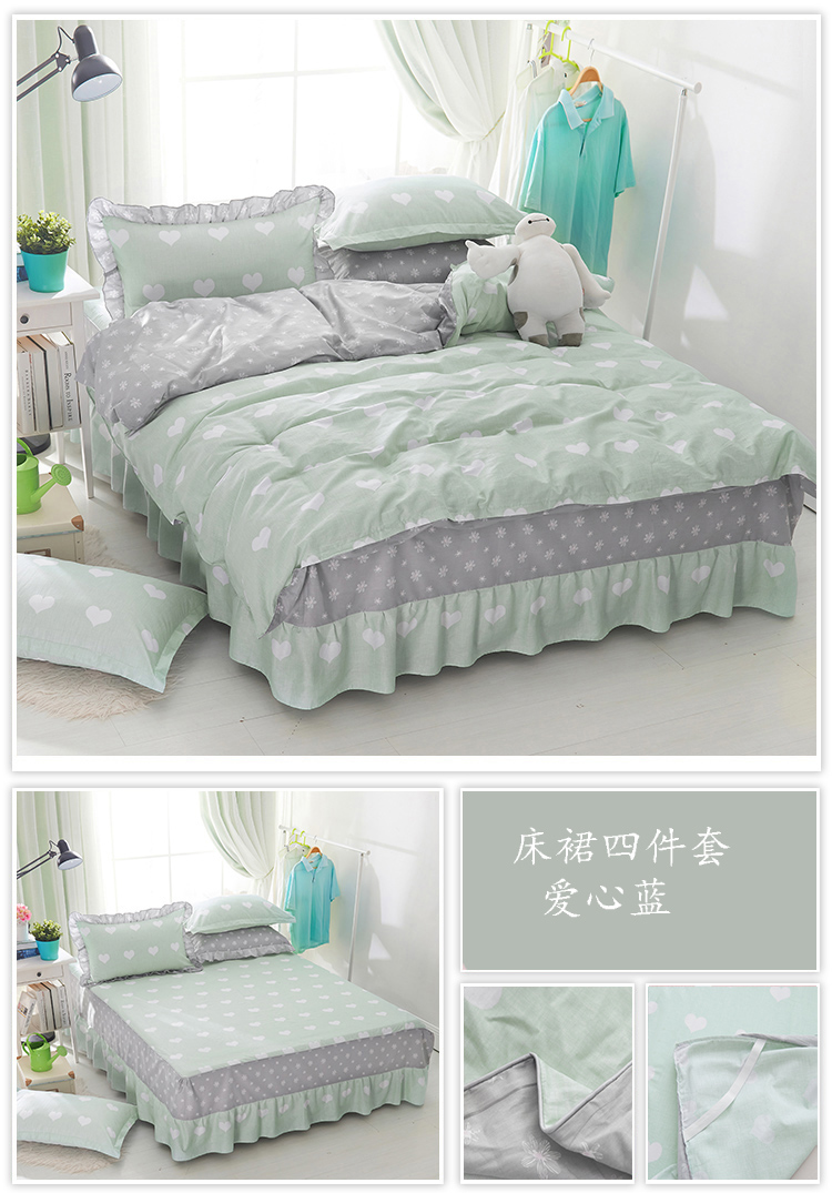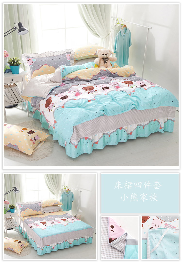 (总)爱妮玖玖 2021新款素印双拼夹棉床裙四件套,晨语初听-玉,繁花满园-紫,洛洛繁花-黄,萌萌熊-驼,梦幻巴黎-玉,梦游仙境-浅绿,秋风落叶-蓝,泰迪宝贝-蓝,甜甜圈-白,幸福花语-深绿