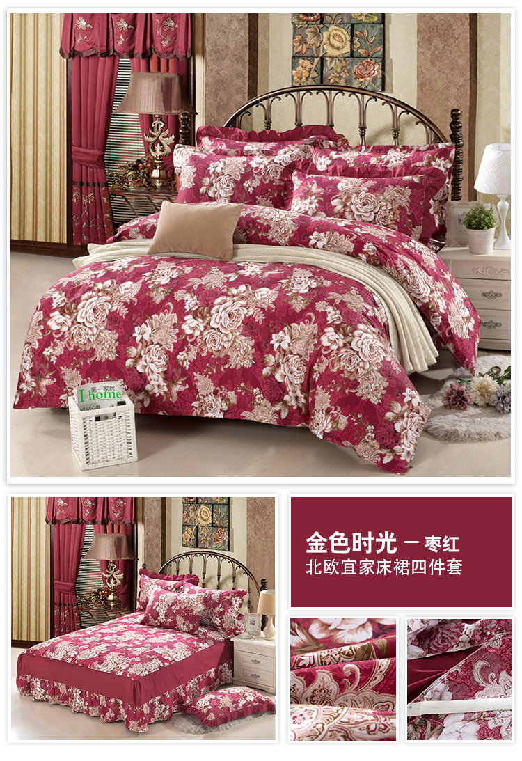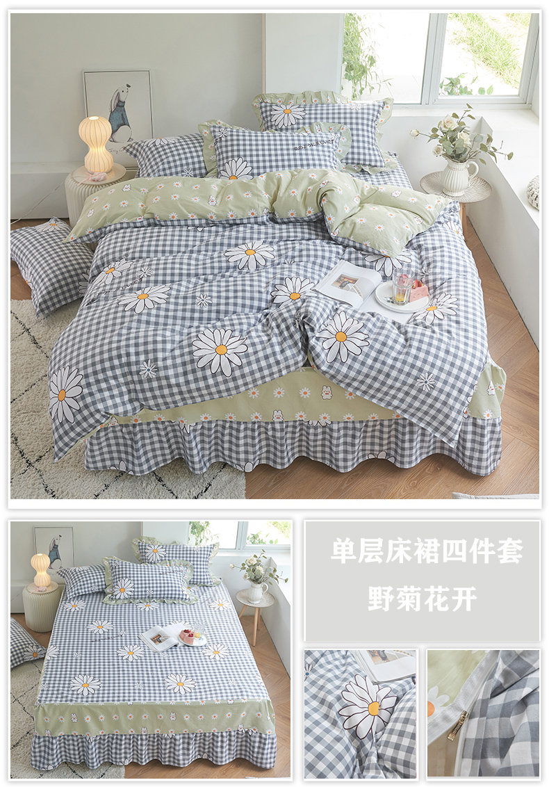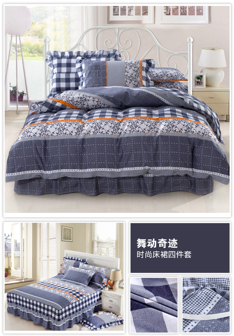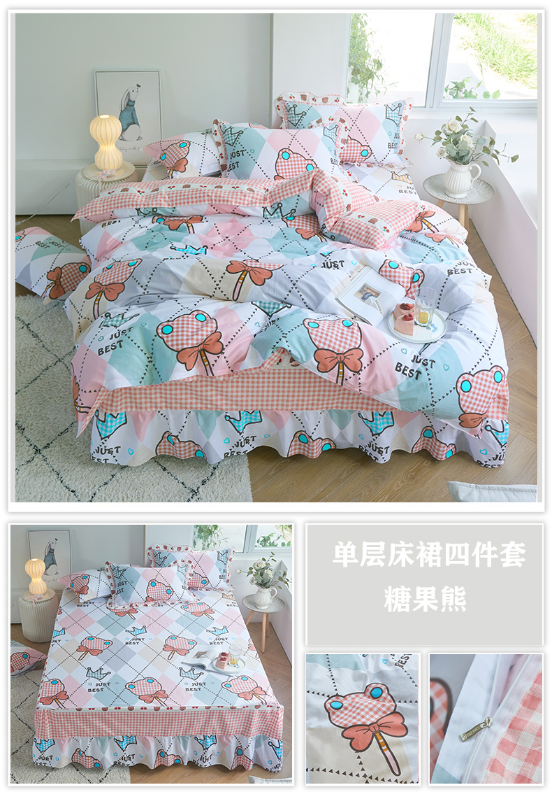 1.8*2.0床标准四件套单层床裙180*200cm双针被套200*230cm信封枕套48*74*2
