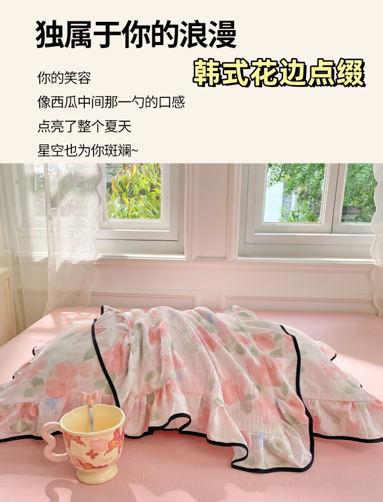 商品名称:梦舒羽 2025新款皱皱双层纱花边枕套宿舍情侣枕芯套单人枕头套 倾城之恋