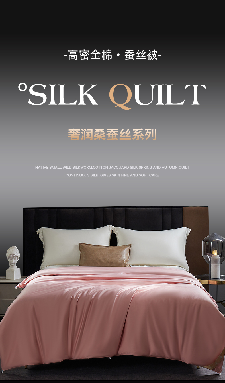 • 91家纺网 家纺一手货源 找家纺 群鹿蚕丝羽绒馆 【柞蚕丝填充可质检】2025新款长绒棉高支纯色蚕丝被可自由组合子母被 藕粉
