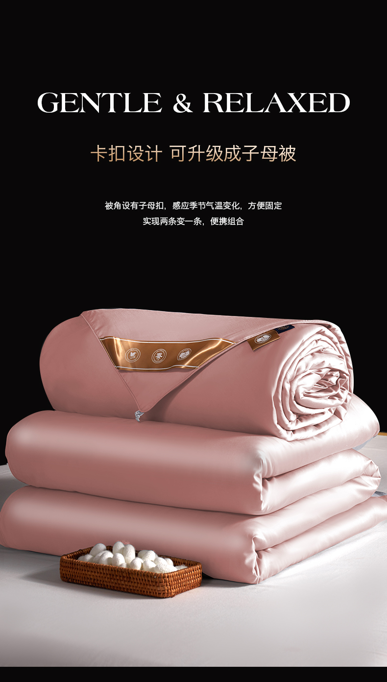 当前位置: 91家纺网 > 商品网购 > 被子 > 蚕丝被 > 群鹿蚕丝羽绒馆 【柞蚕丝填充可质检】2025新款长绒棉高支纯色蚕丝被可自由组合子母被 藕粉
