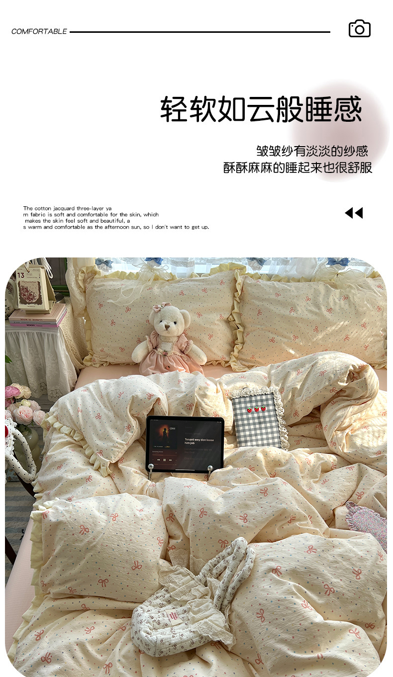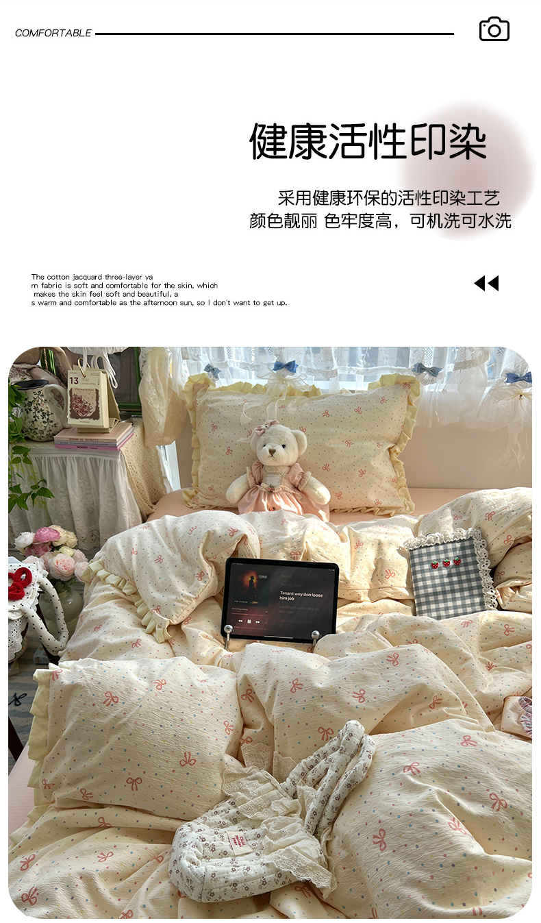 当前位置: 91家纺网 > 商品网购 > 床品套件 > 四件套 > 其它四件套 > 原素 2025少女心云感双层纱皱皱边花卉四件套 蝴蝶结紫