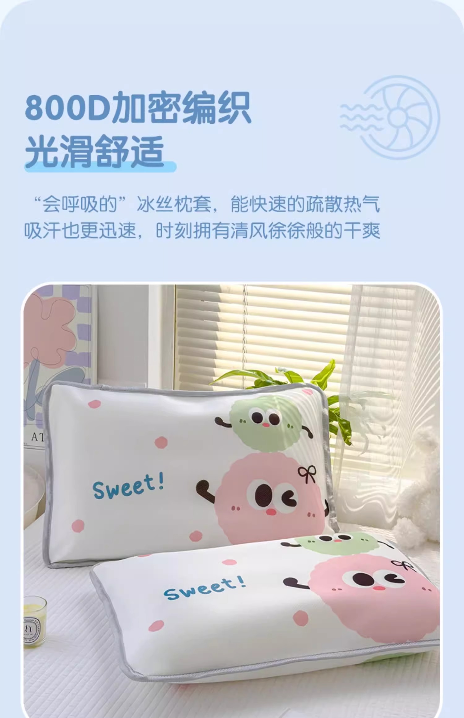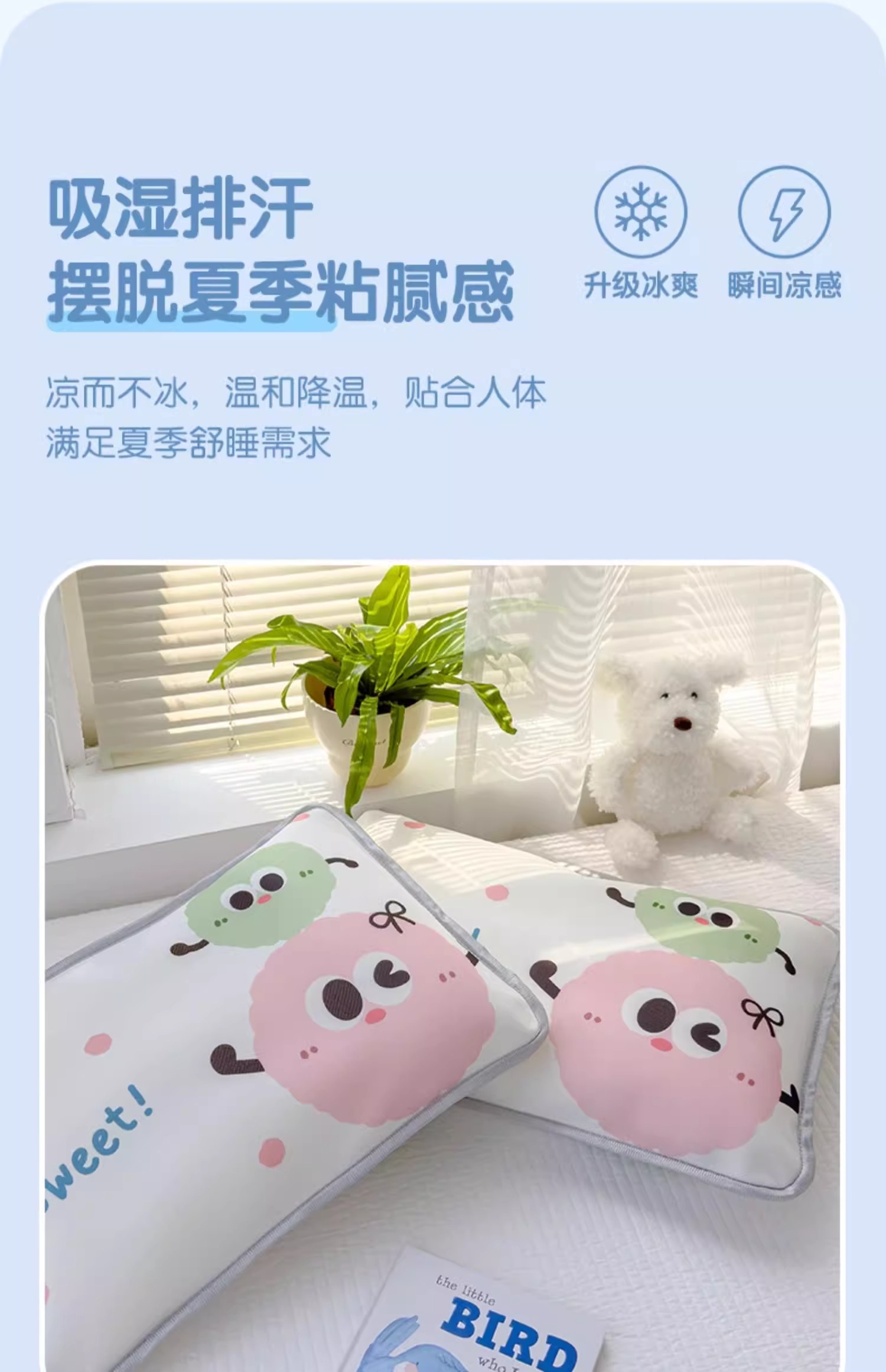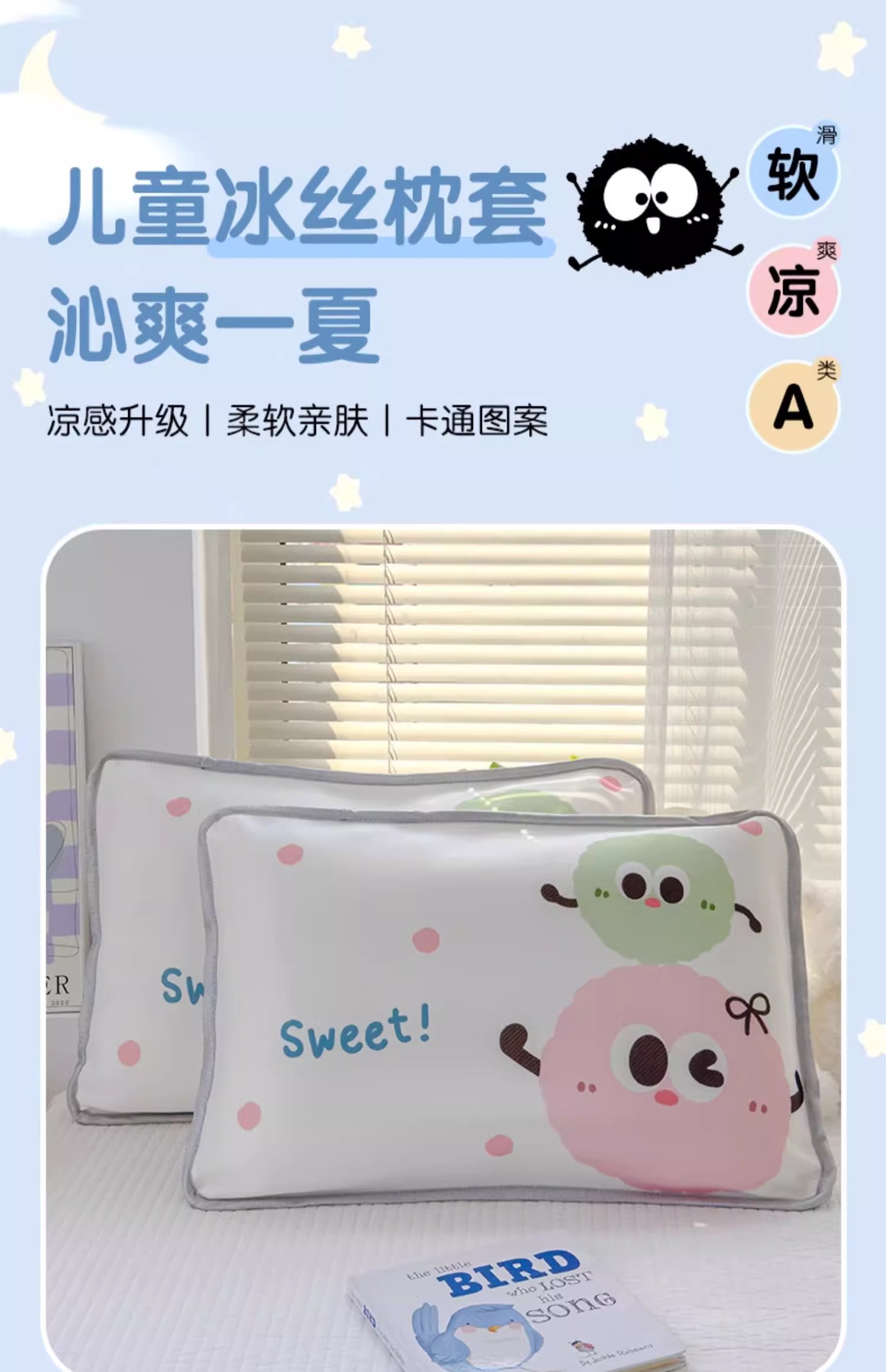 丽美人家纺 2025新款儿童冰丝枕套 煤球宝贝