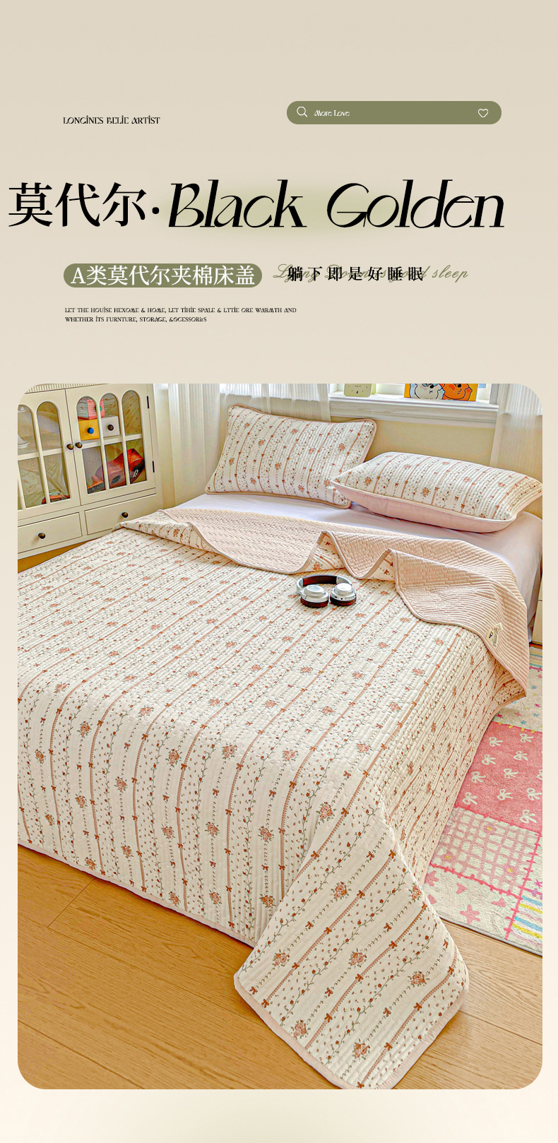 当前位置: 91家纺网 > 商品网购 > 床上用品 > 床盖 > 恒尚居 2025新款莫代尔天丝夏季床盖印花夹棉床单三件套床褥垫-系列二 莫代尔-金色阳光