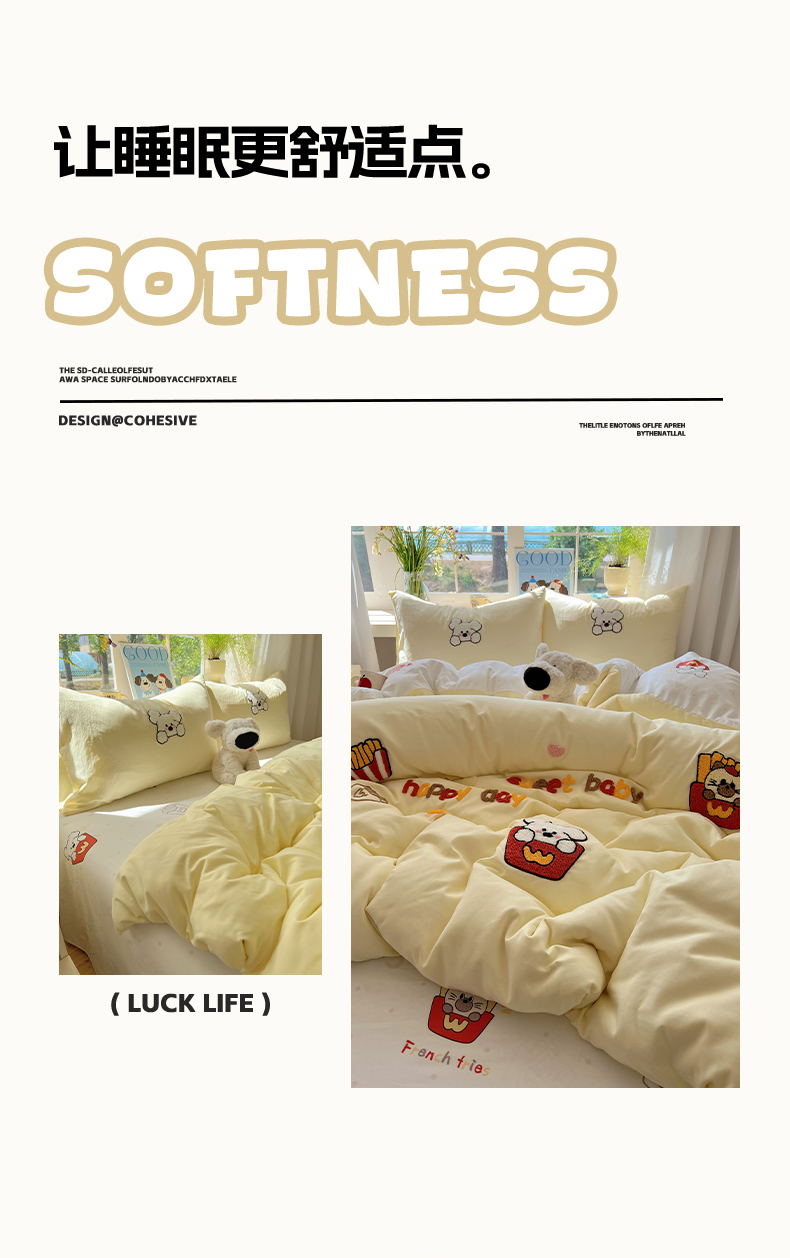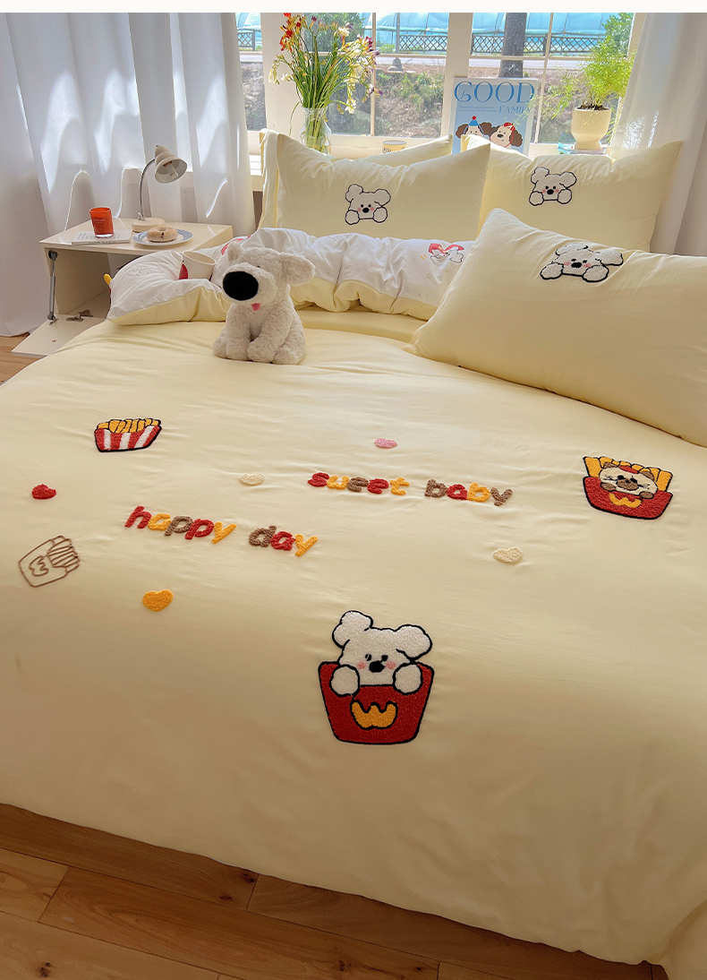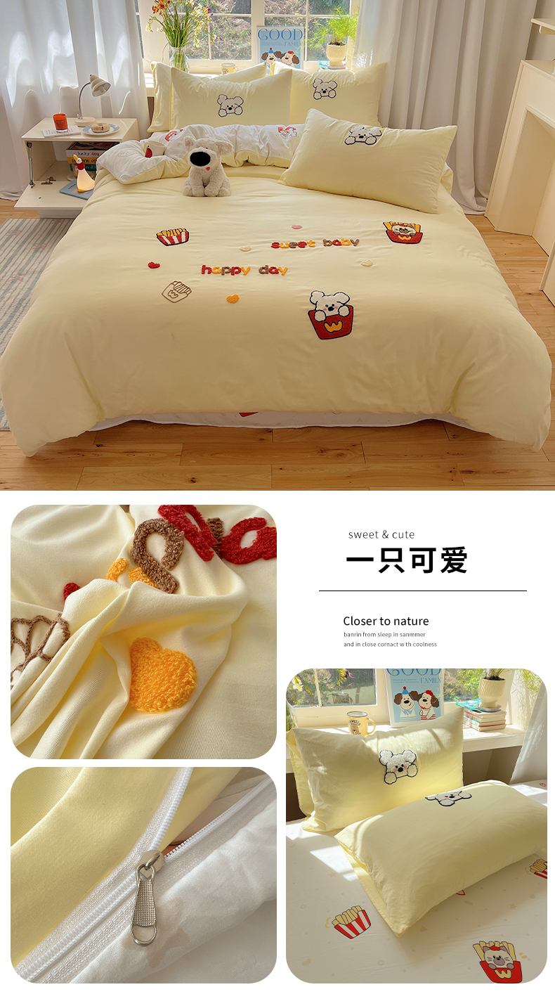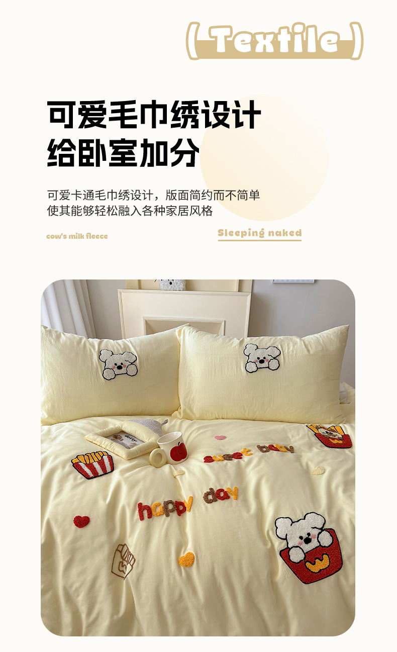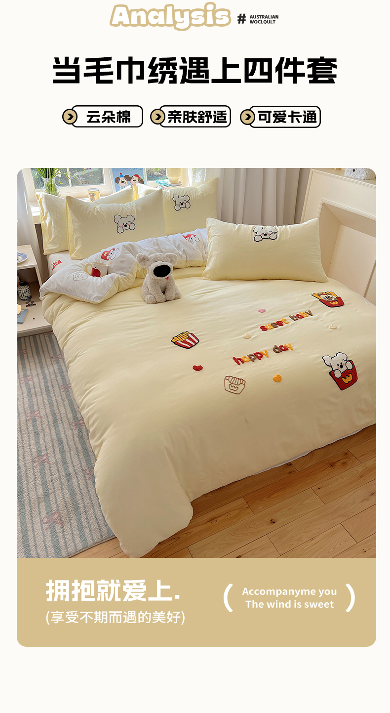 当前位置: 91家纺网 > 商品网购 > 床品套件 > 四件套 > 水洗棉四件套 > 韩都家居 2025新款卡通软萌水洗棉毛巾绣四件套 一只可爱