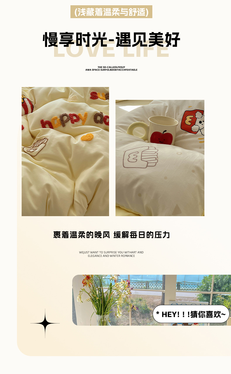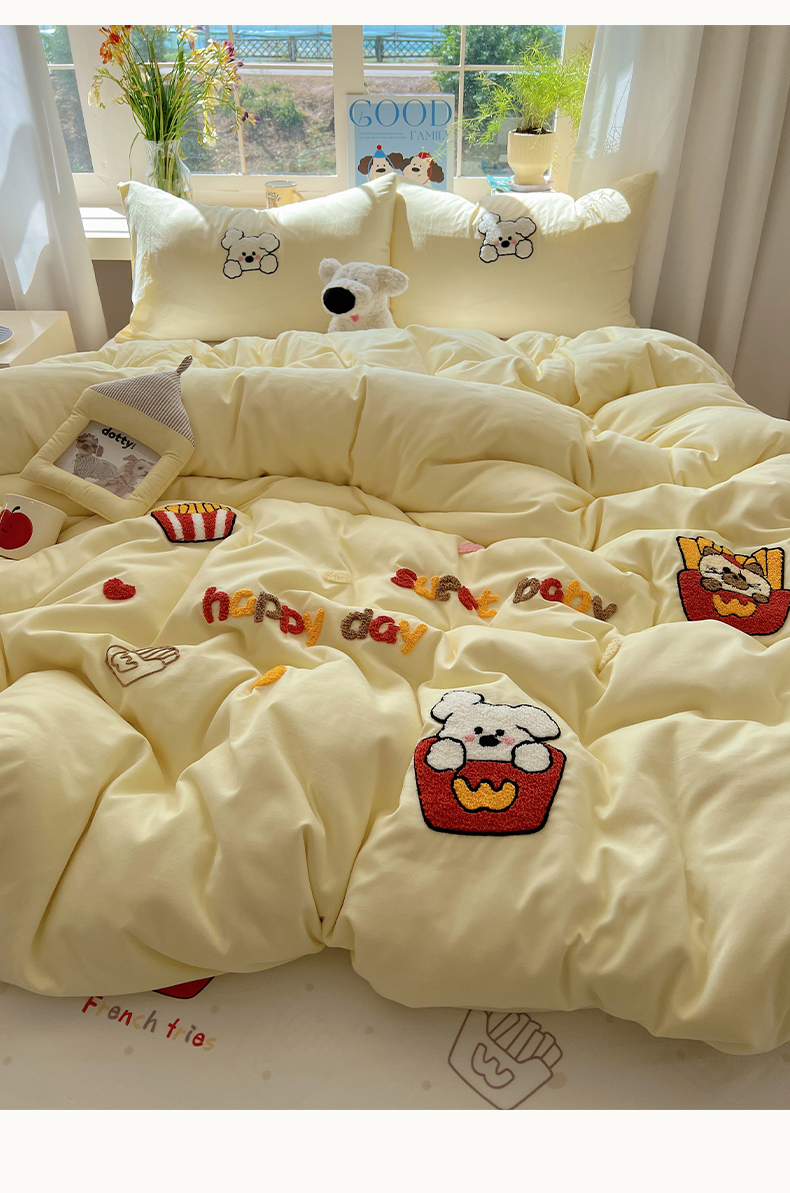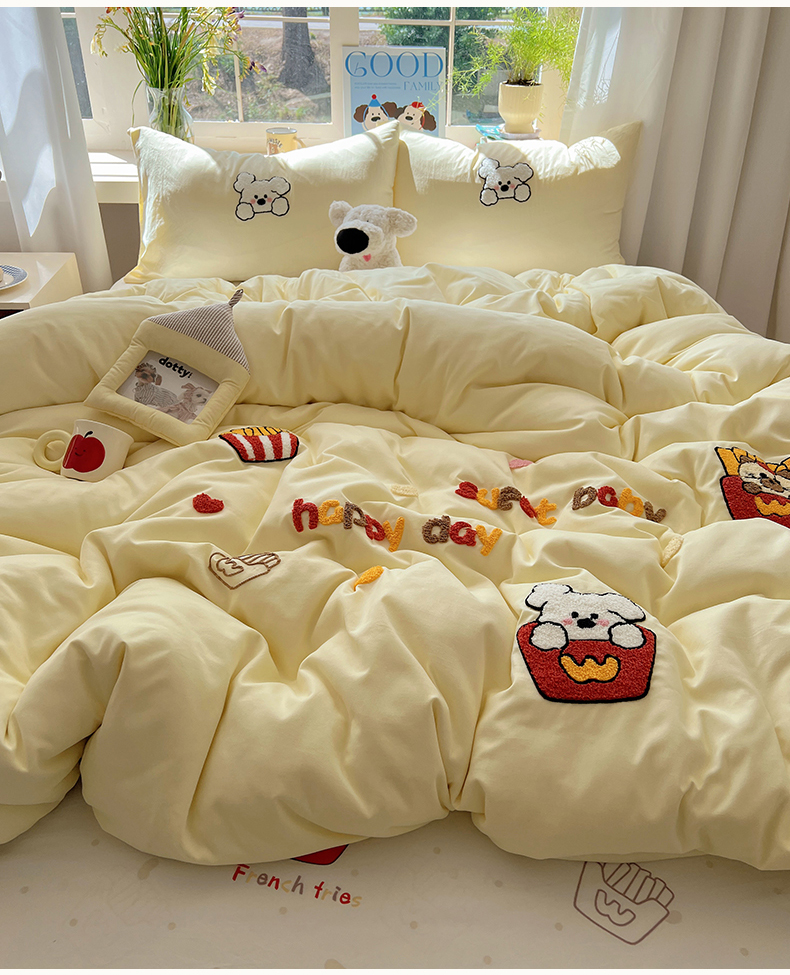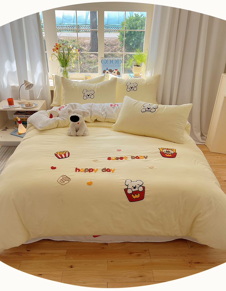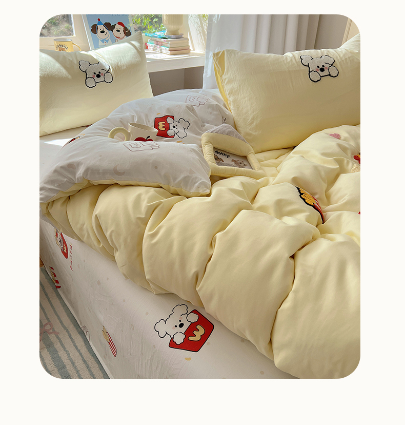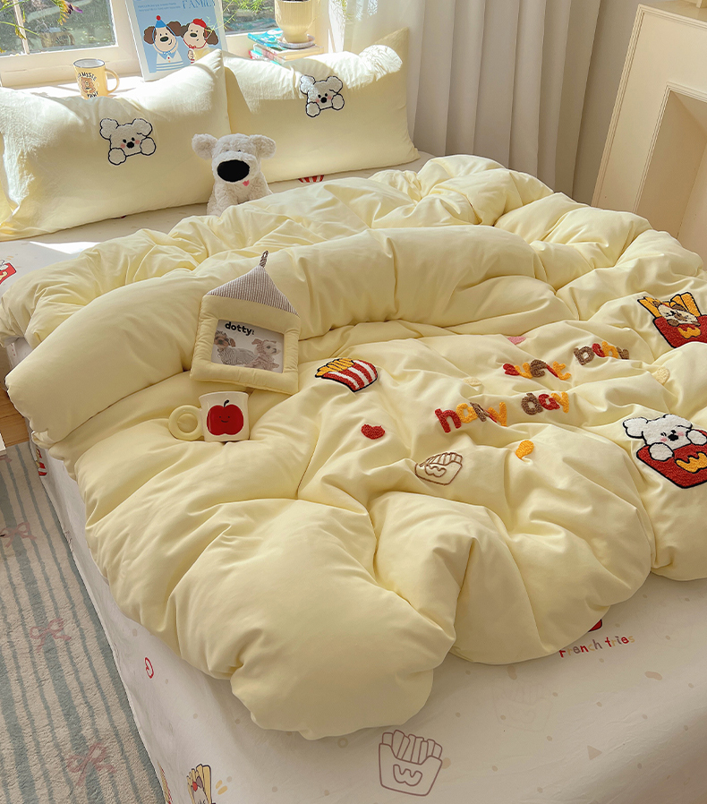 当前位置: 91家纺网 > 商品网购 > 床品套件 > 四件套 > 水洗棉四件套 > 韩都家居 2025新款卡通软萌水洗棉毛巾绣四件套 一只可爱