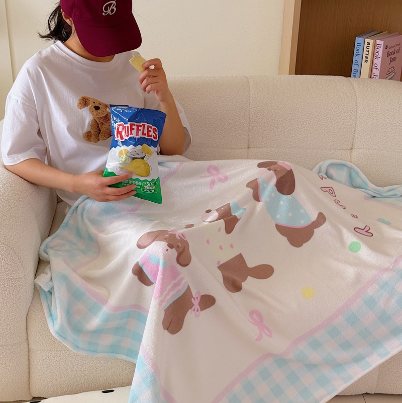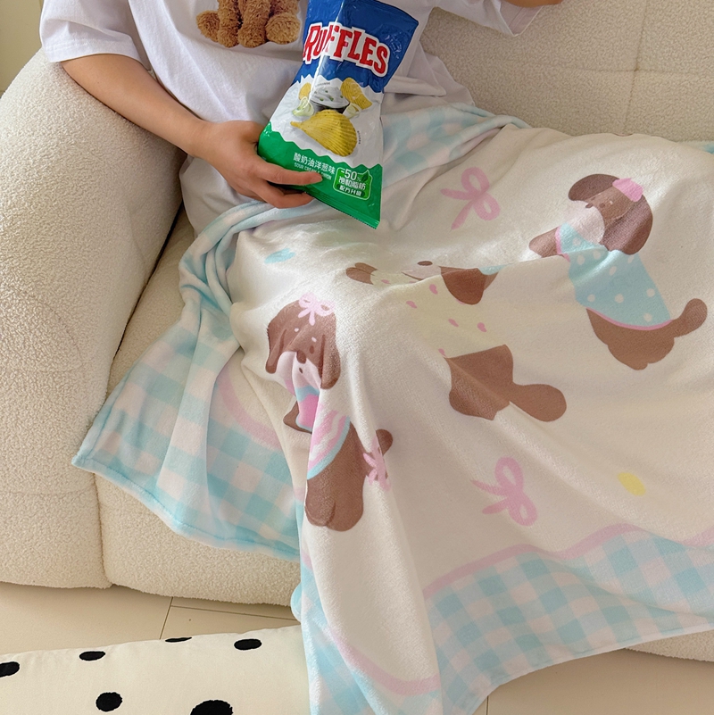 商品名称:美乐迪2025四季款双面牛奶绒毛毯空调毯 蓝格子狗