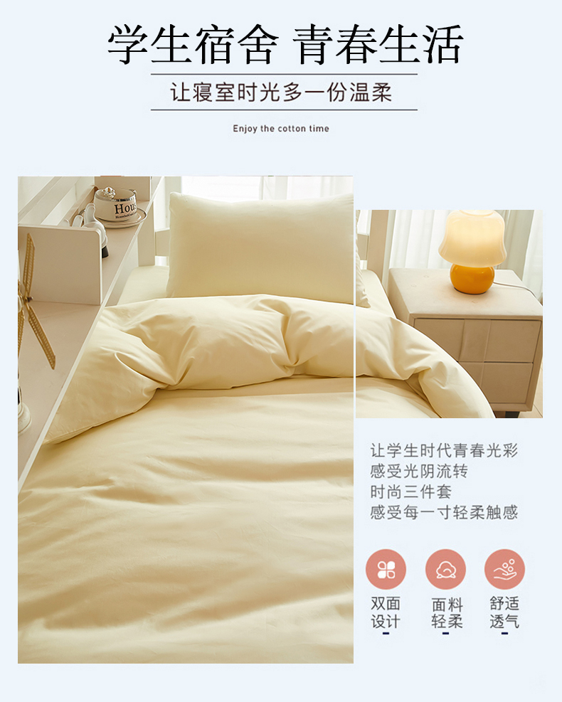 当前位置: 91家纺网 > 商品网购 > 床品套件 > 三件套 > 全美家居 2025新款学生全棉纯棉三件套-纯色系列 晨雾米