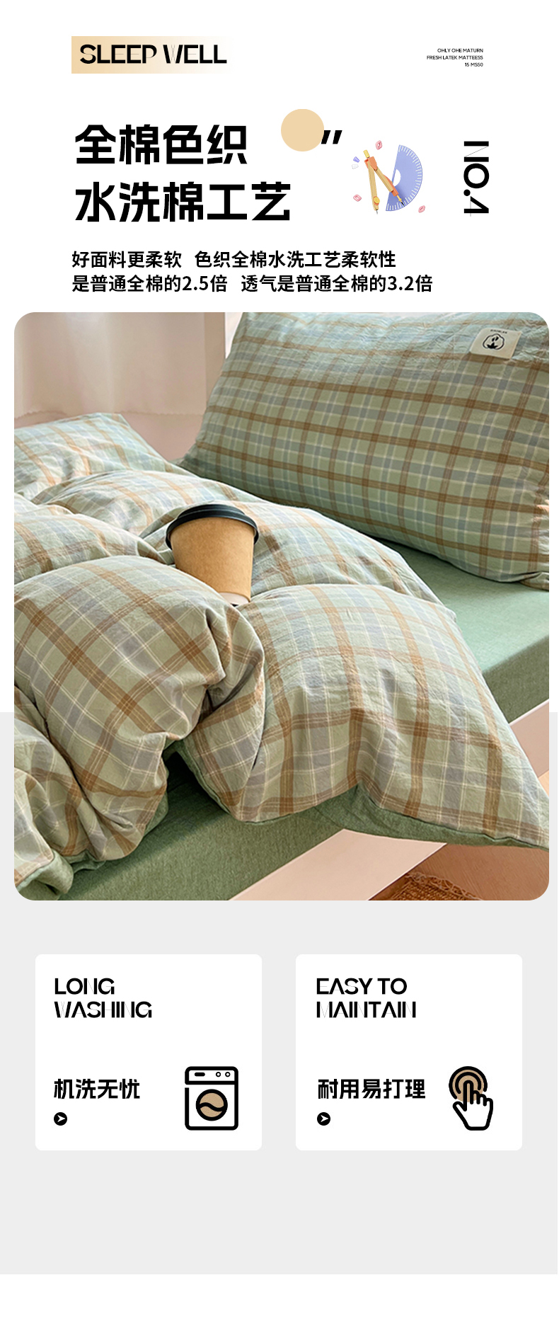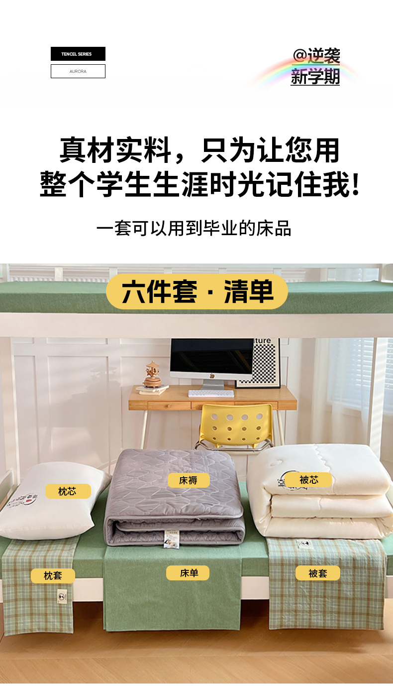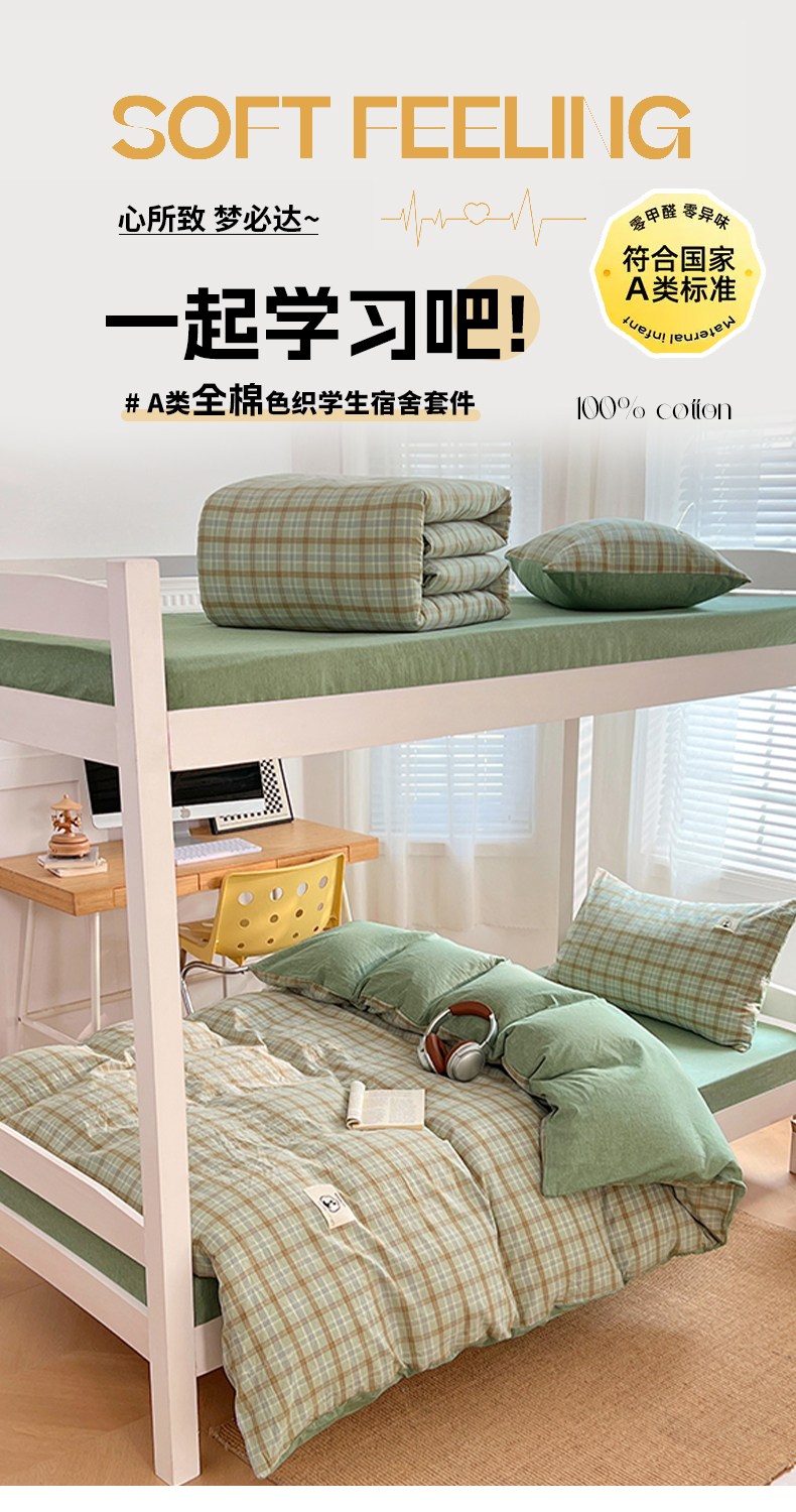 商品名称:(总)2025新款学生季色织全棉学生六件套上下铺组合套装日式复古大学生寝室套件