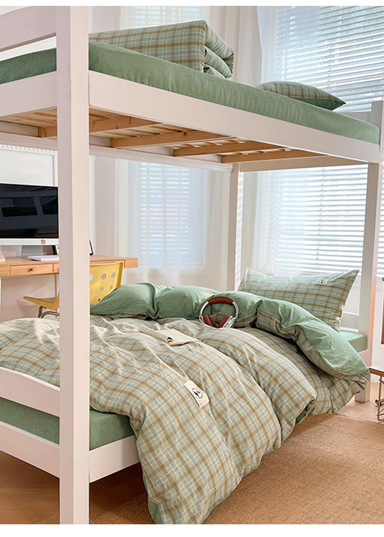 (总)2025新款学生季色织全棉学生六件套上下铺组合套装日式复古大学生寝室套件
