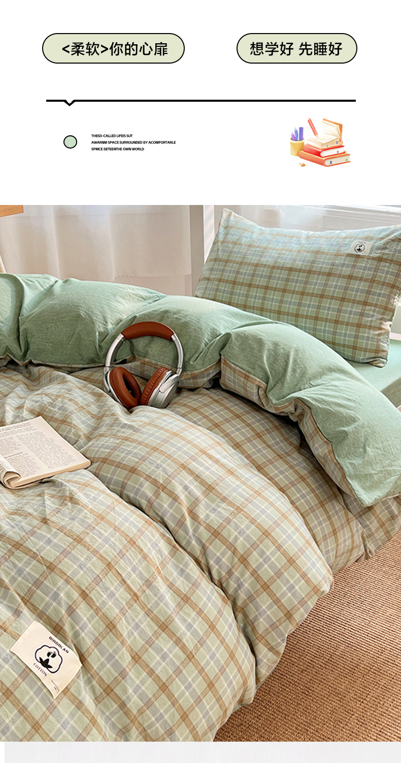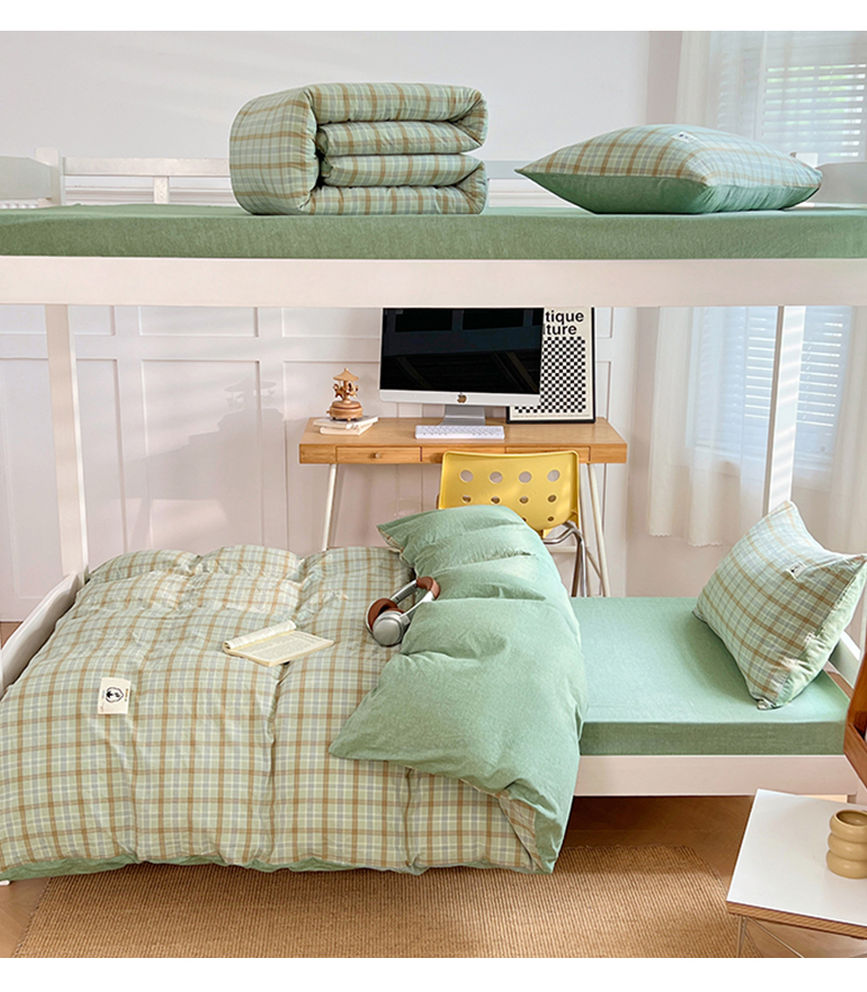 (总)2024新款学生季色织全棉三件套夏天宿舍上下铺学生六件套 ,米娅蓝灰,罗拉寻梦蓝,暧芙湖蓝,维多利亚紫,素色风尚绿,素色风尚灰,素色风尚蓝,黄小格,黑中格,粉小格,波西米亚绿,巴莉灰橘