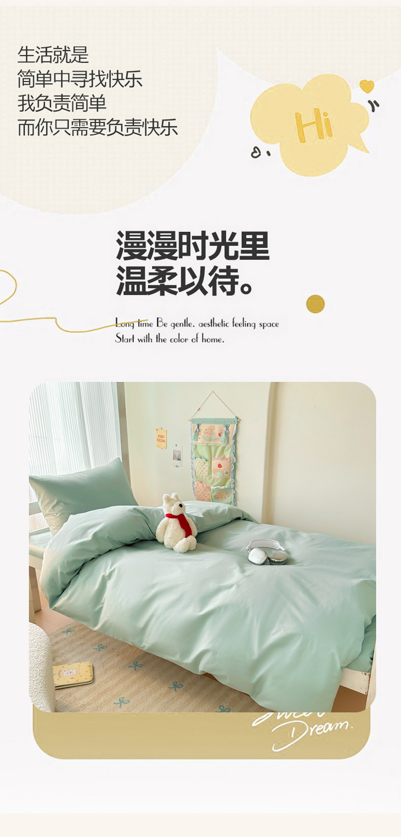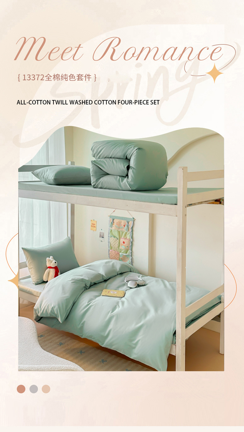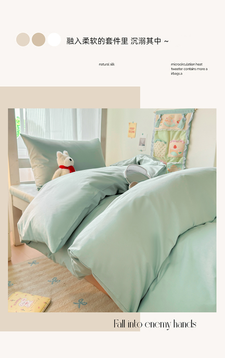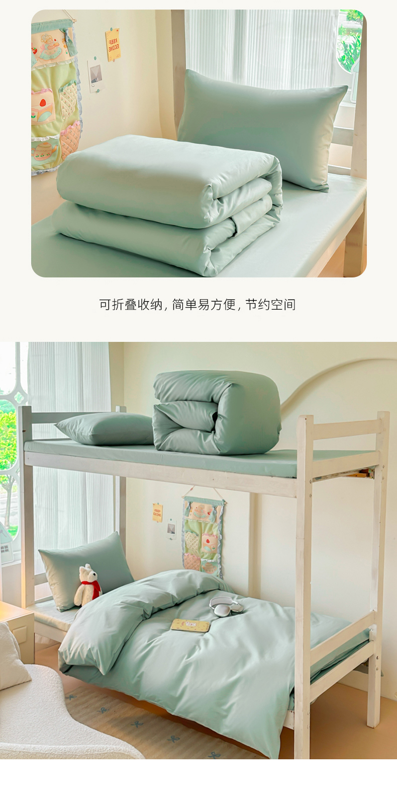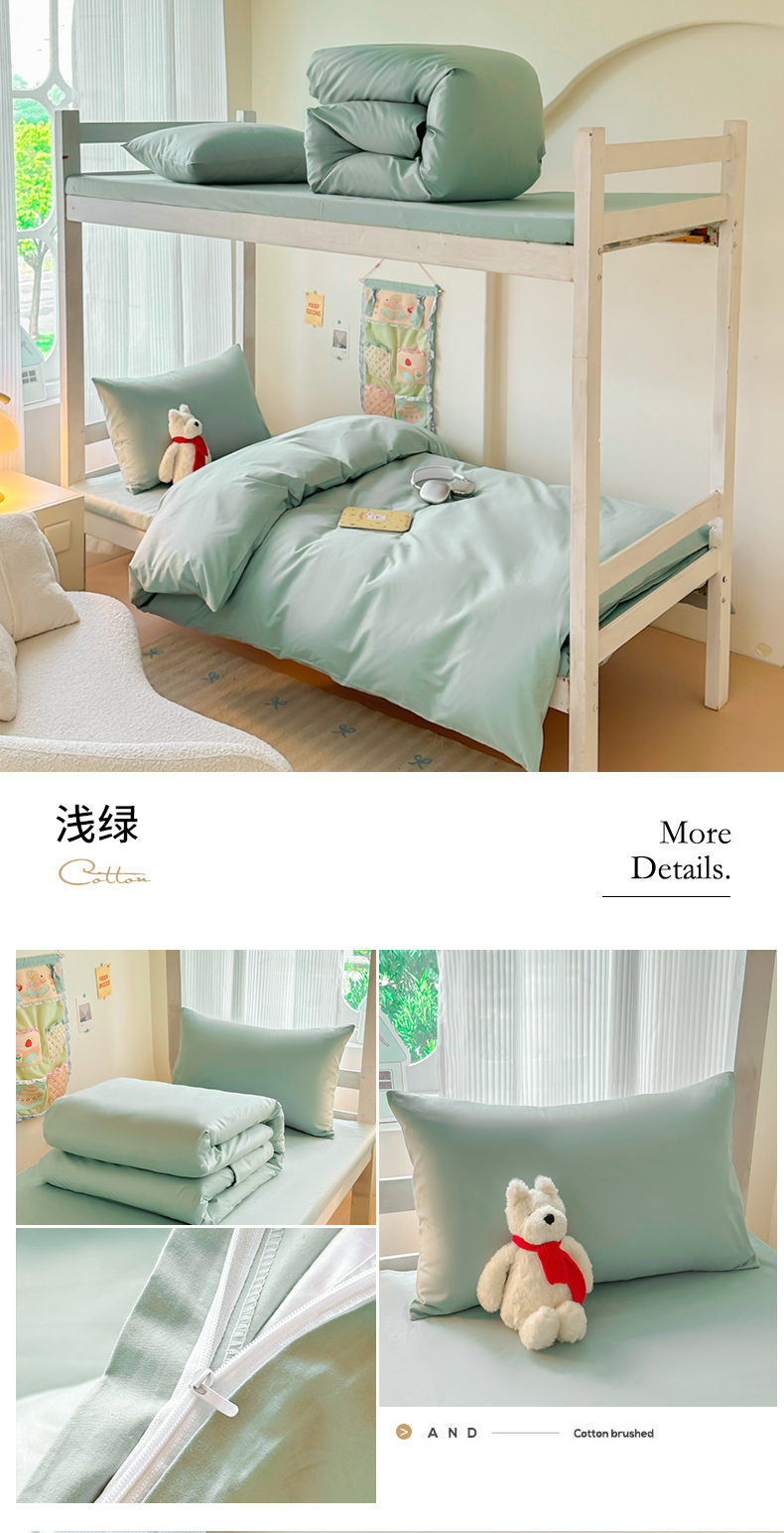 商品名称:简冠家纺 2025新款13372全棉纯色学生三件套 浅绿