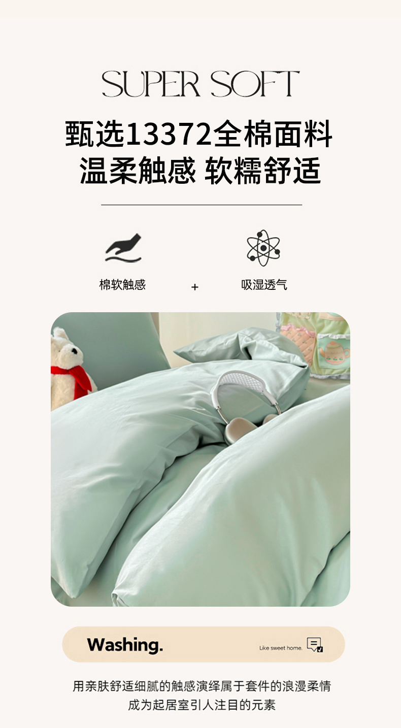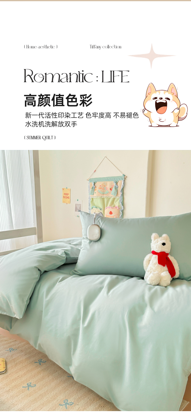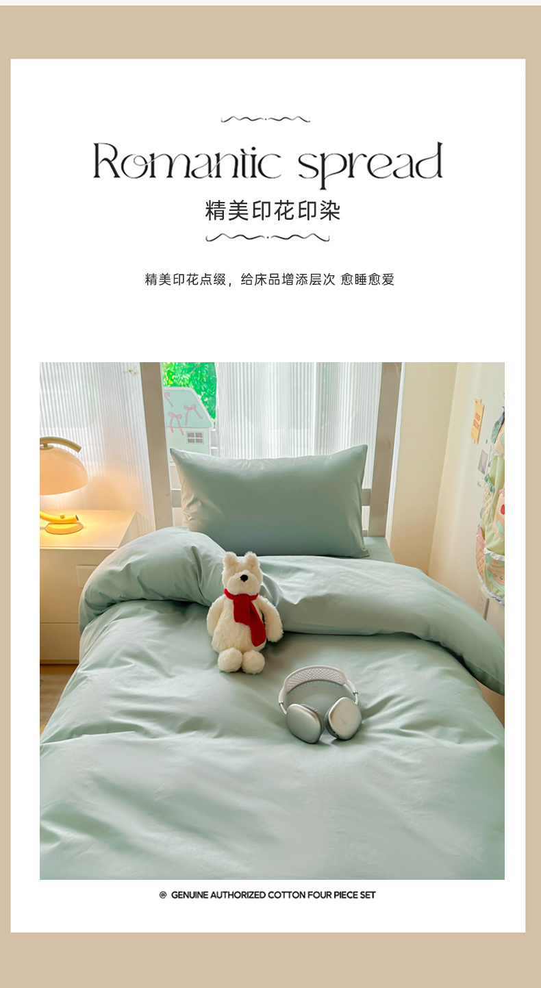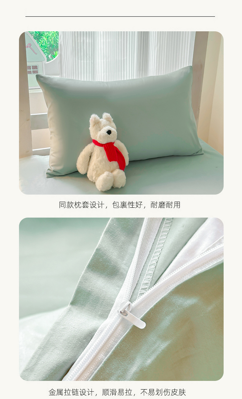 商品名称:简冠家纺 2025新款13372全棉纯色学生三件套 浅绿