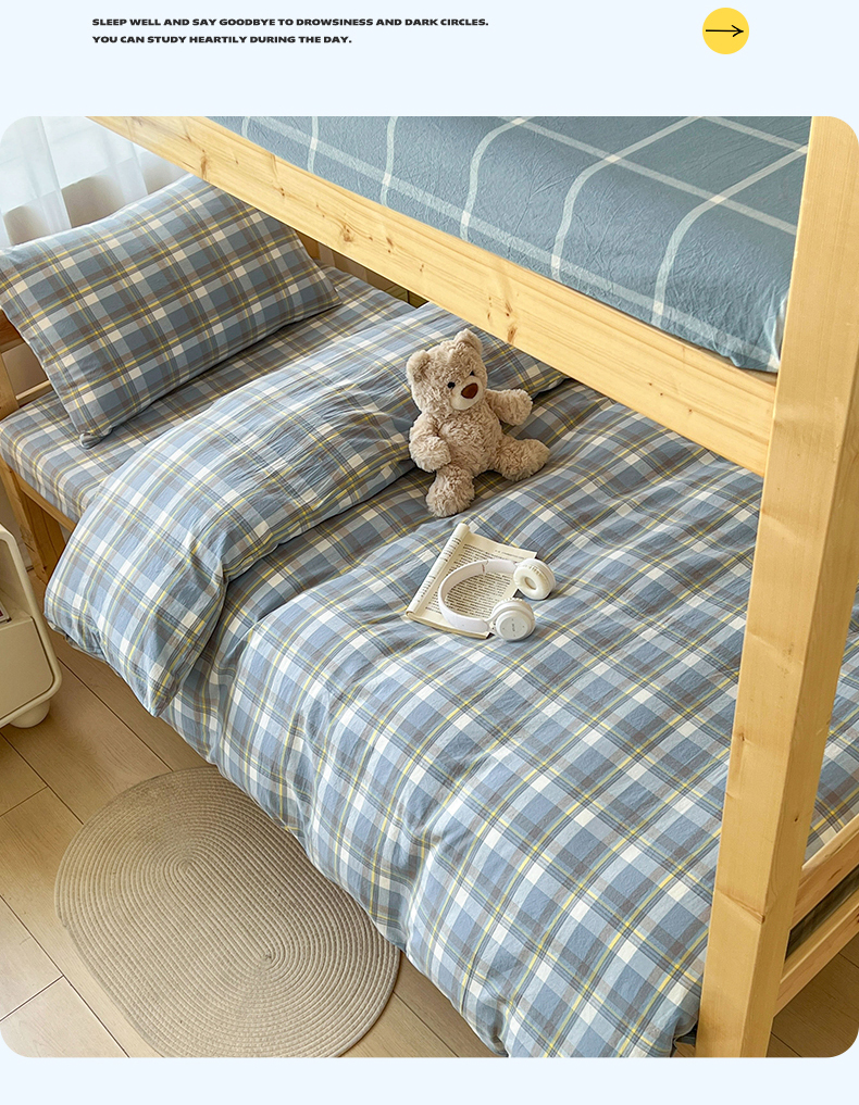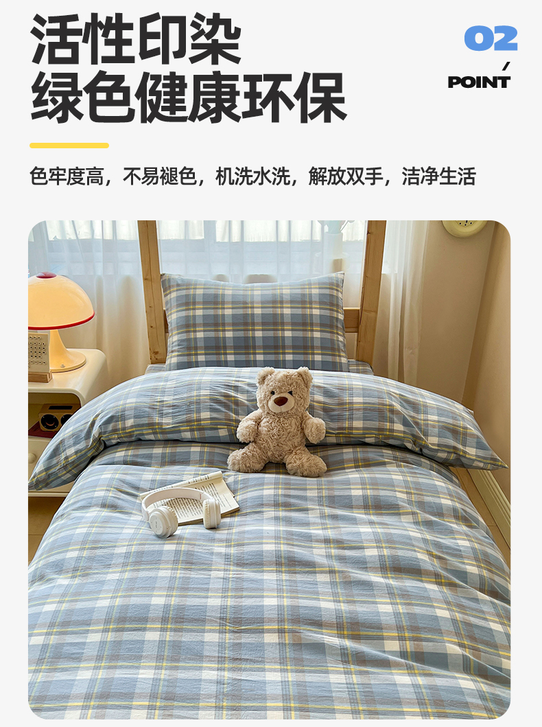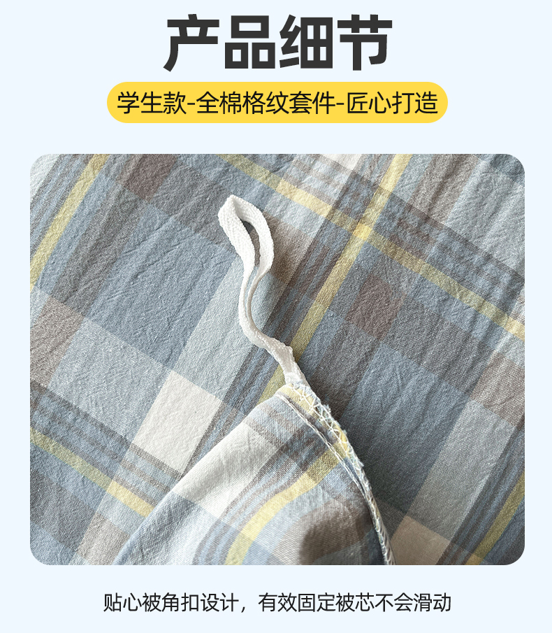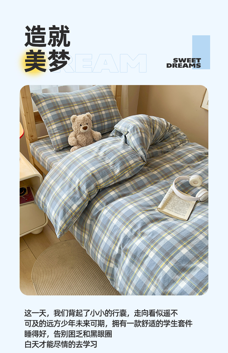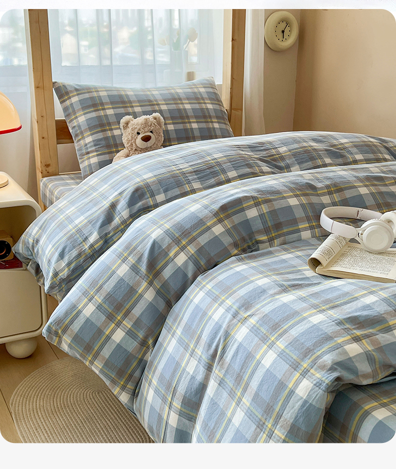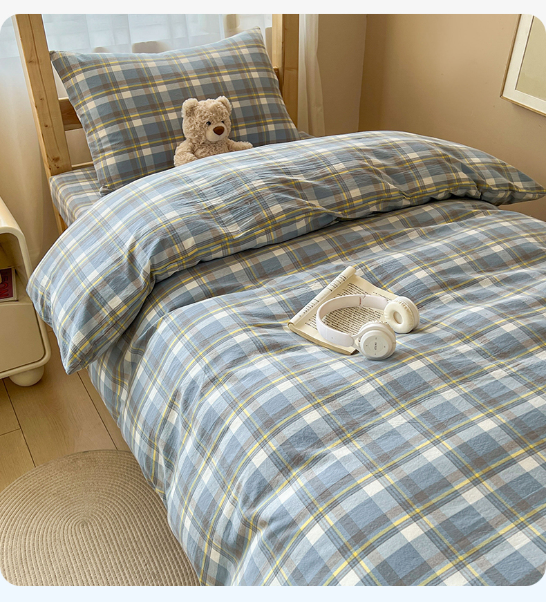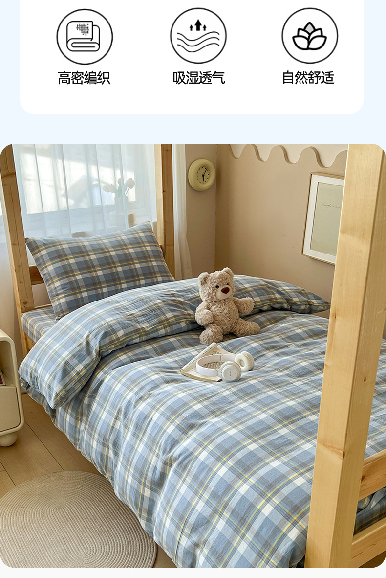当前位置: 91家纺网 > 商品网购 > 床品套件 > 三件套 > 恒爱家纺 2025新款学生季全棉印花格子三件套 莫尼-蓝