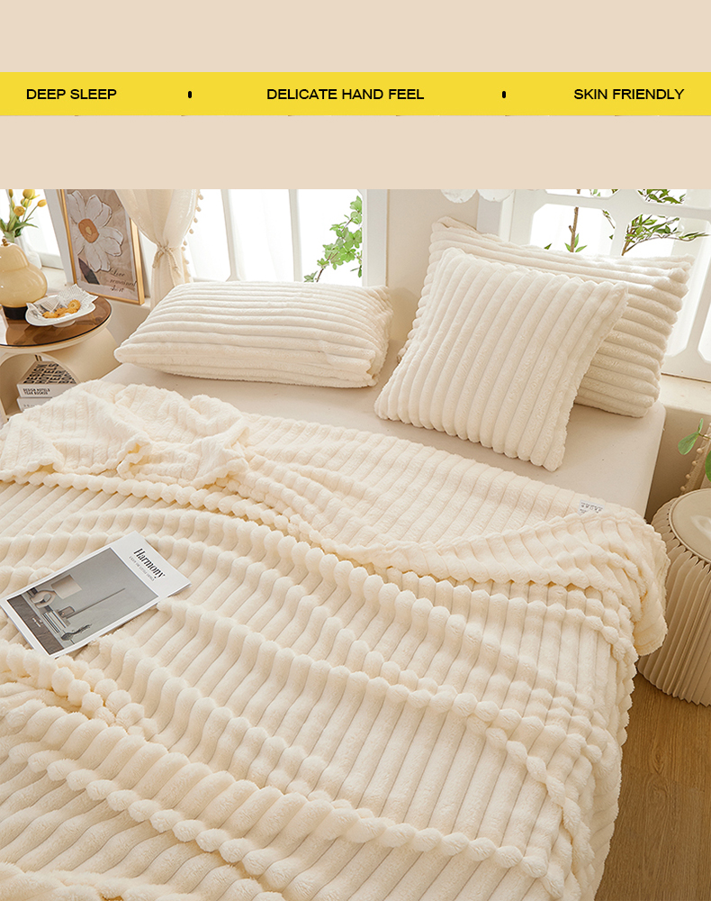 商品名称:楼兰公主 2025新款A类兔兔绒多功能大抽条毛毯 蜜卡其
