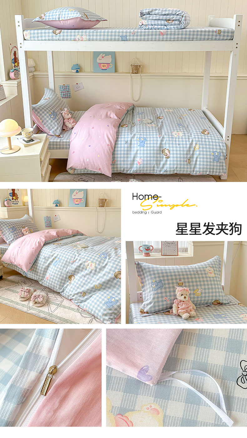 当前位置: 91家纺网 > 商品网购 > 床品套件 > 三件套 > 2025新款学生宿舍全棉三件套 星星发夹狗