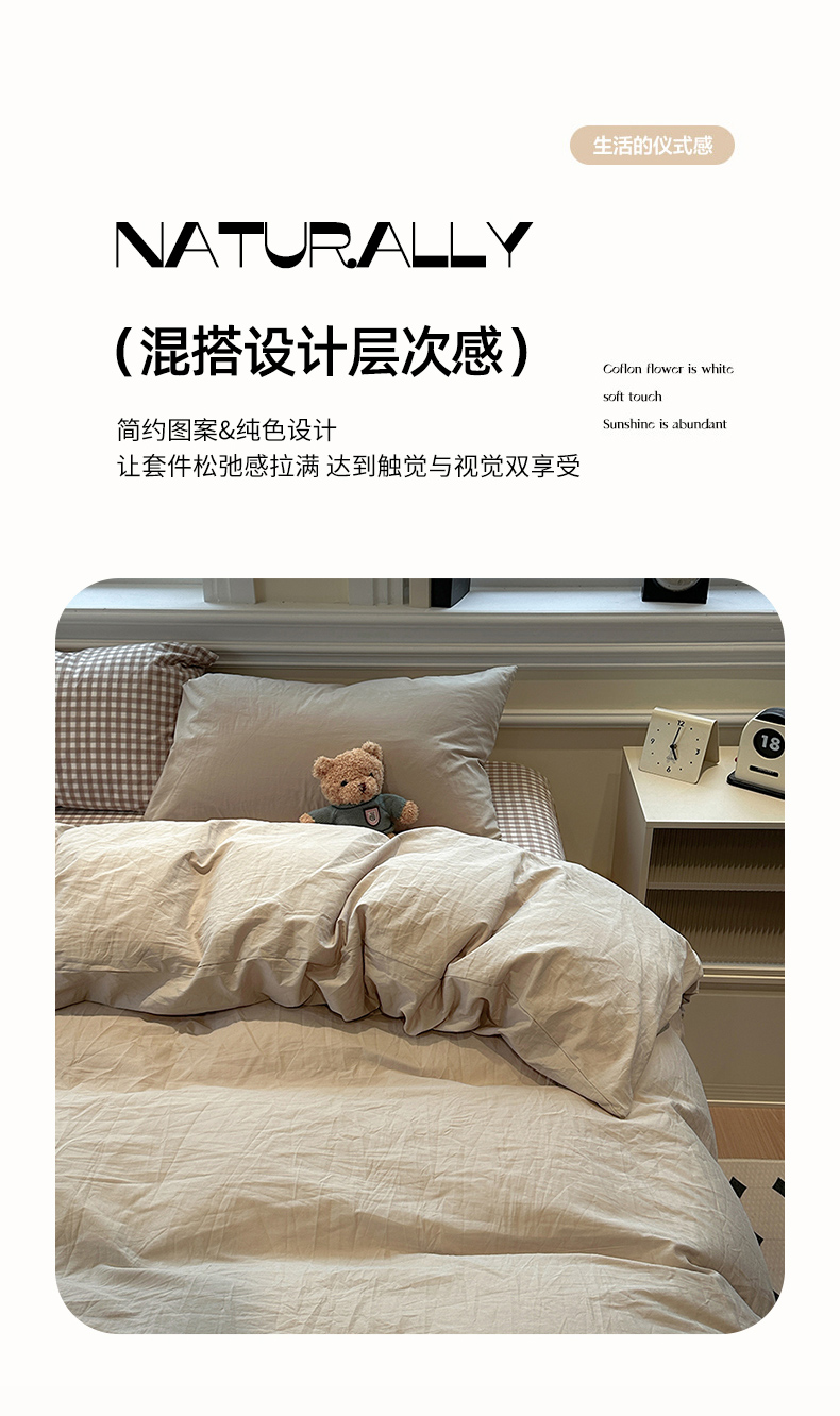 当前位置: 91家纺网 > 商品网购 > 床品套件 > 四件套 > 水洗棉四件套 > 欣晴家纺 2025新款软糯水洗棉条格无印宜家风混搭三件套四件套(风格2) 混搭米驼
