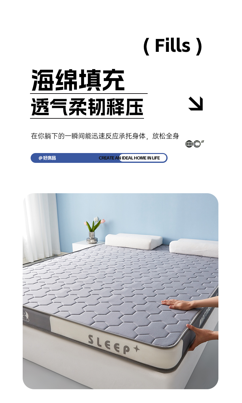 当前位置: 91家纺网 > 商品网购 > 床垫/床褥 > 普通床垫 > 一禾 2025新款立体纯色海绵牛奶丝床垫-成人床垫 立体灰