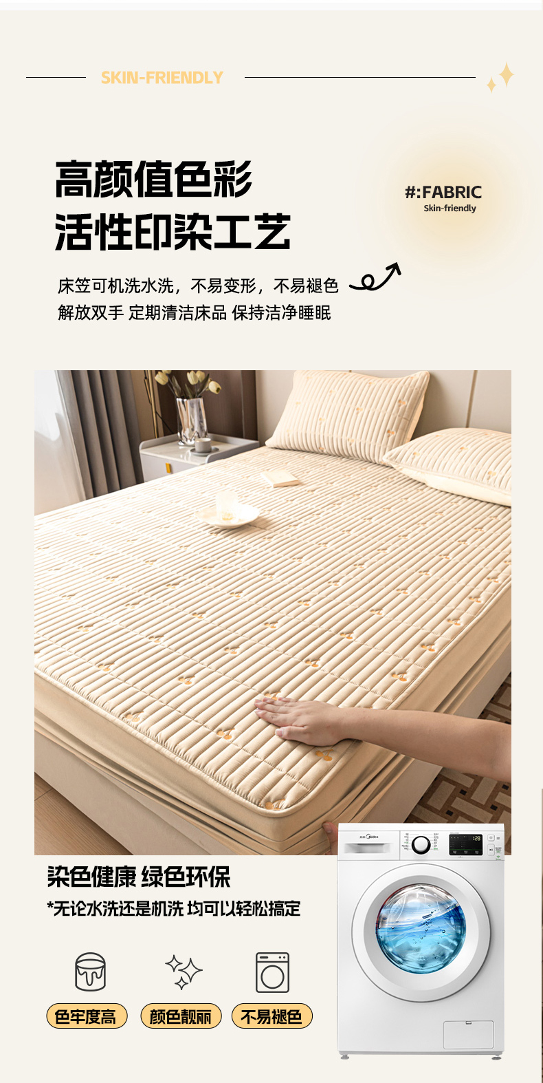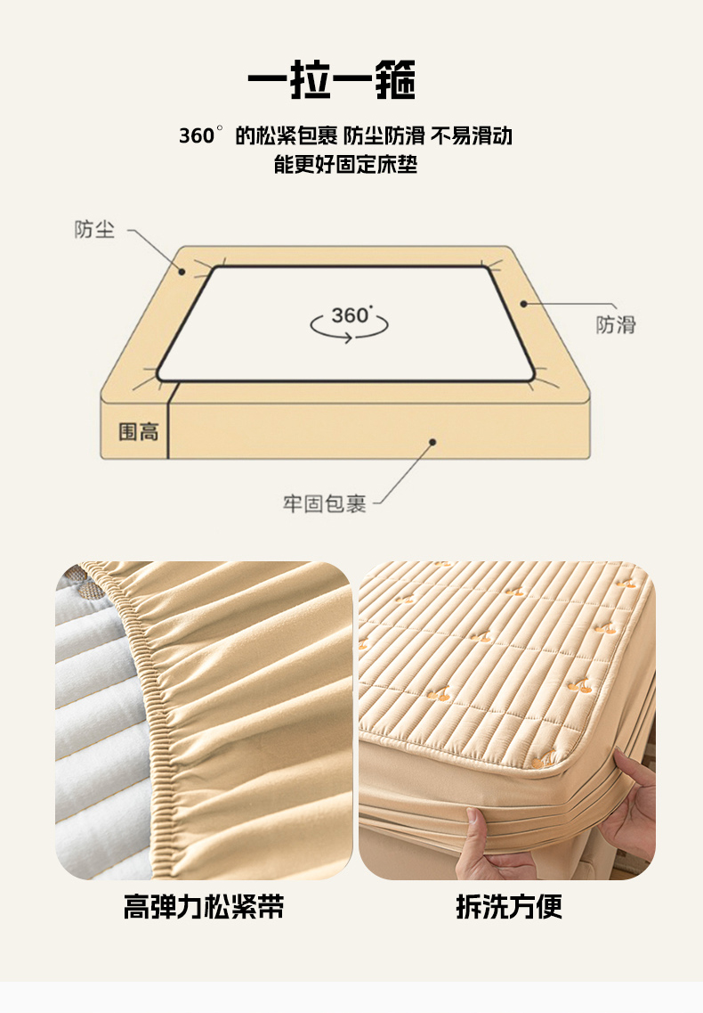 • 91家纺网 家纺一手货源 找家纺 暖季家纺 2025新款A类亲肤面料夹棉绣花床笠-防水款 小樱桃-卡其-防水款