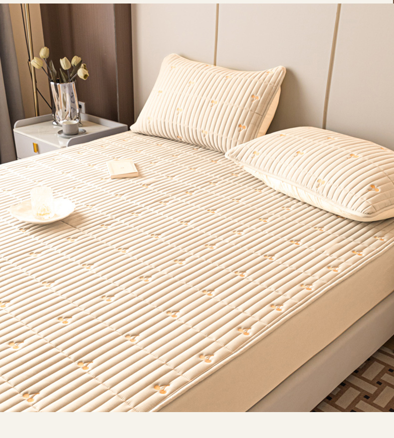 暖季家纺 2025新款A类亲肤面料夹棉绣花床笠-防水款 小樱桃-卡其-防水款