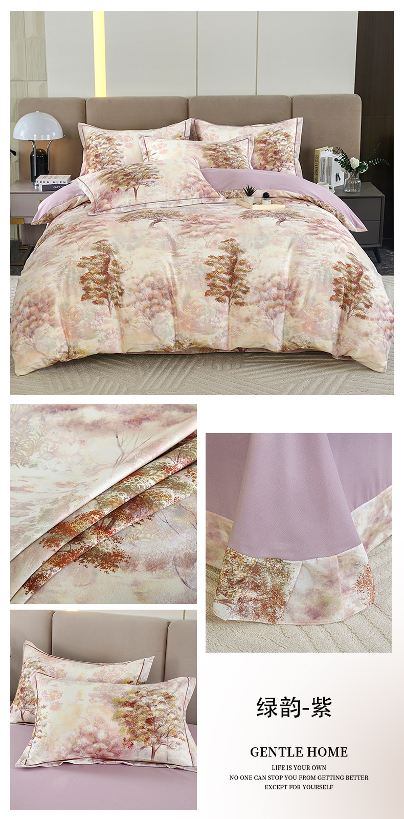 商品名称:金纱玉纺 2025年新款加厚四件套 绿韵-紫