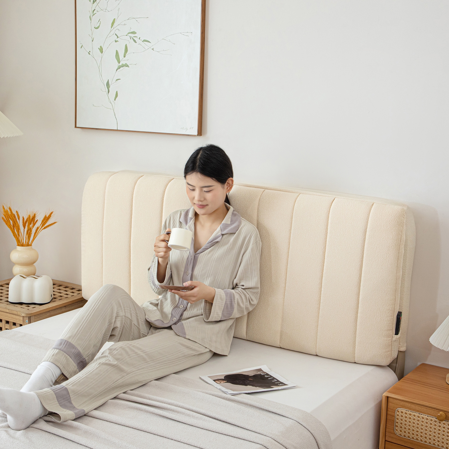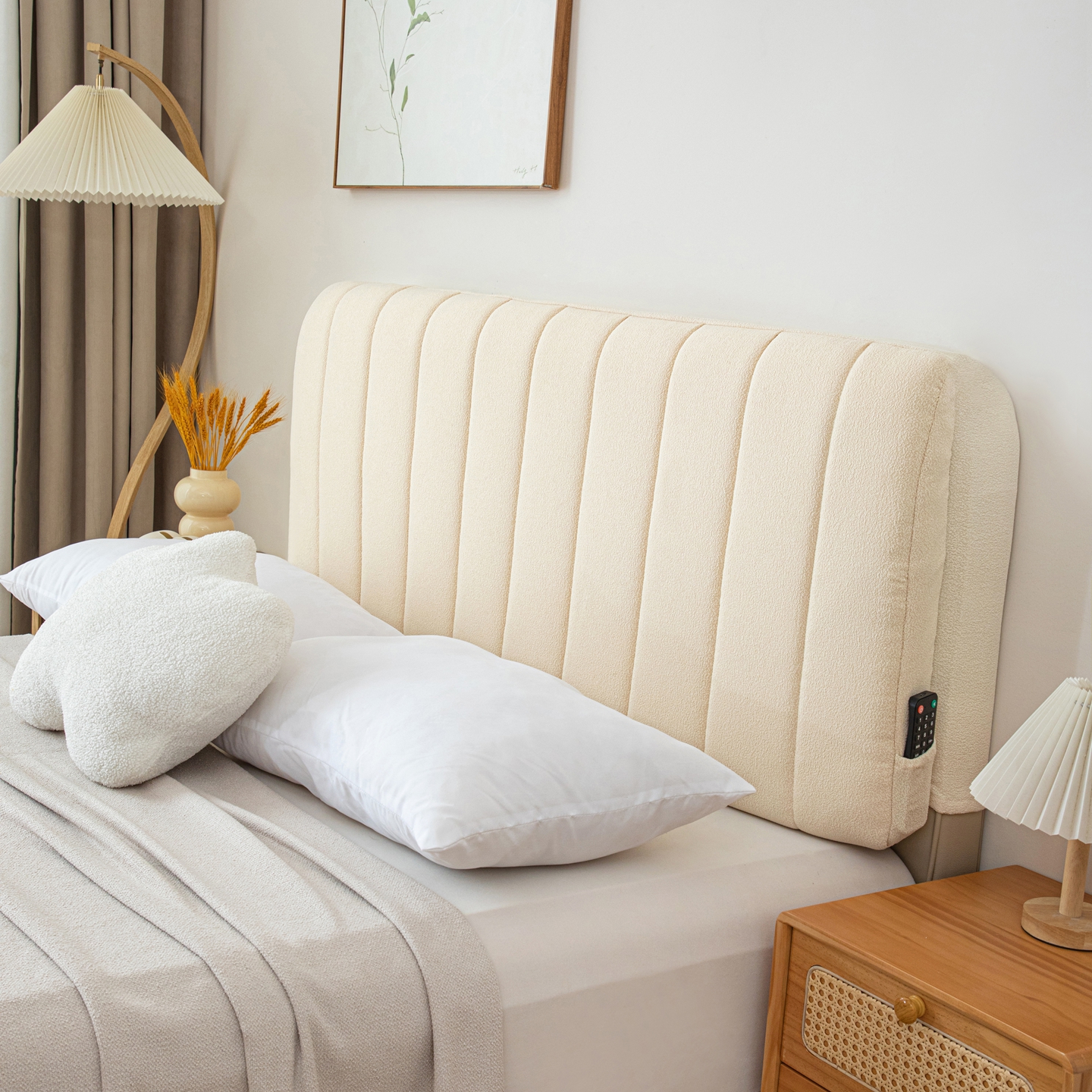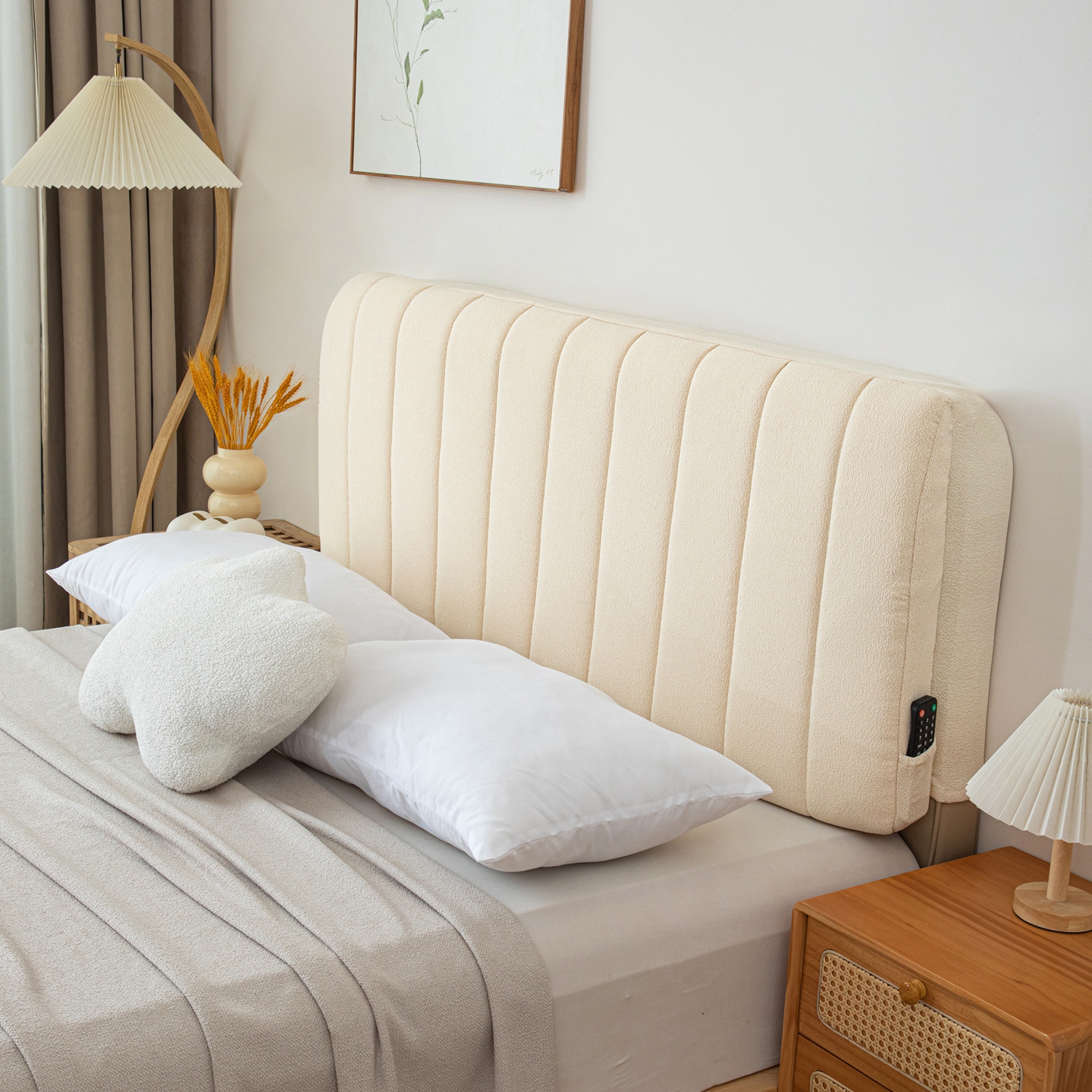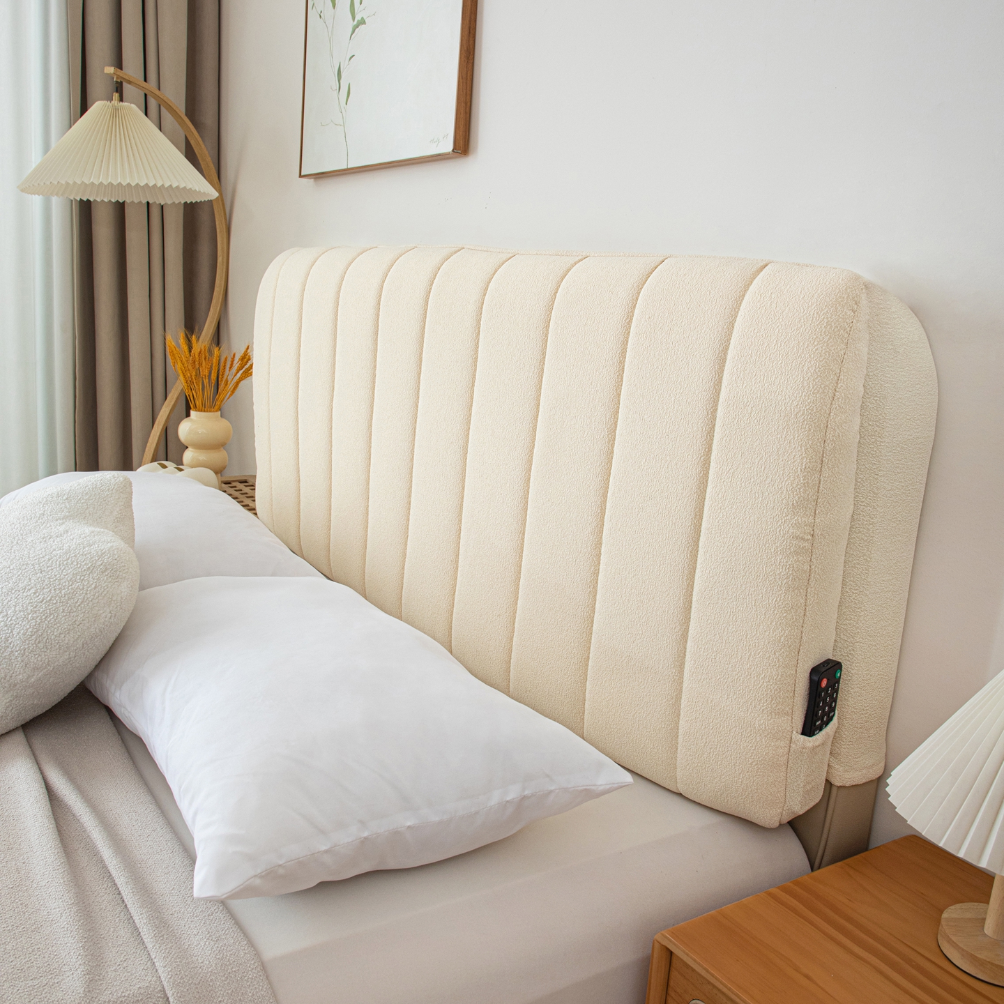 沐沐家纺 2026新款泰迪绒床头罩靠背 奶油白