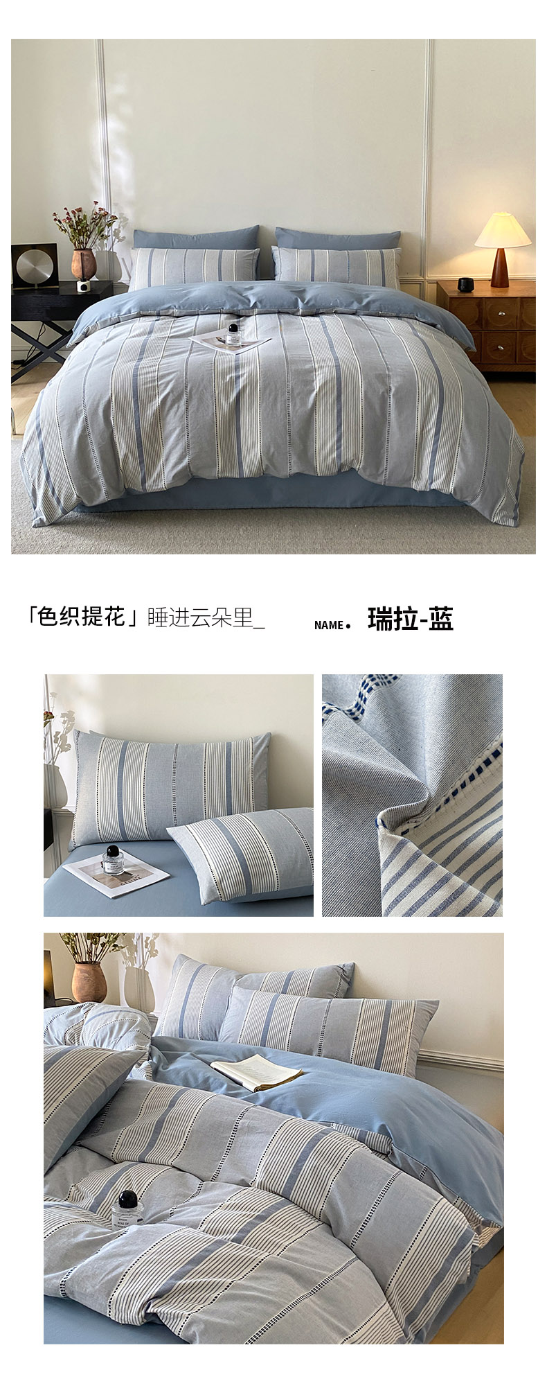 当前位置: 91家纺网 > 商品网购 > 床品套件 > 四件套 > 提花四件套 > ab家纺 2025新款全棉色织提花四件套 瑞拉-蓝