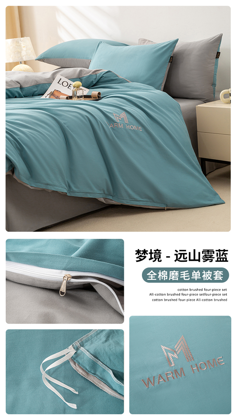 商品名称:憨豆家纺 2026新款全棉磨毛加厚长绒棉单被套纯色学生宿舍贡缎100%纯棉被套 梦境--远山雾蓝
