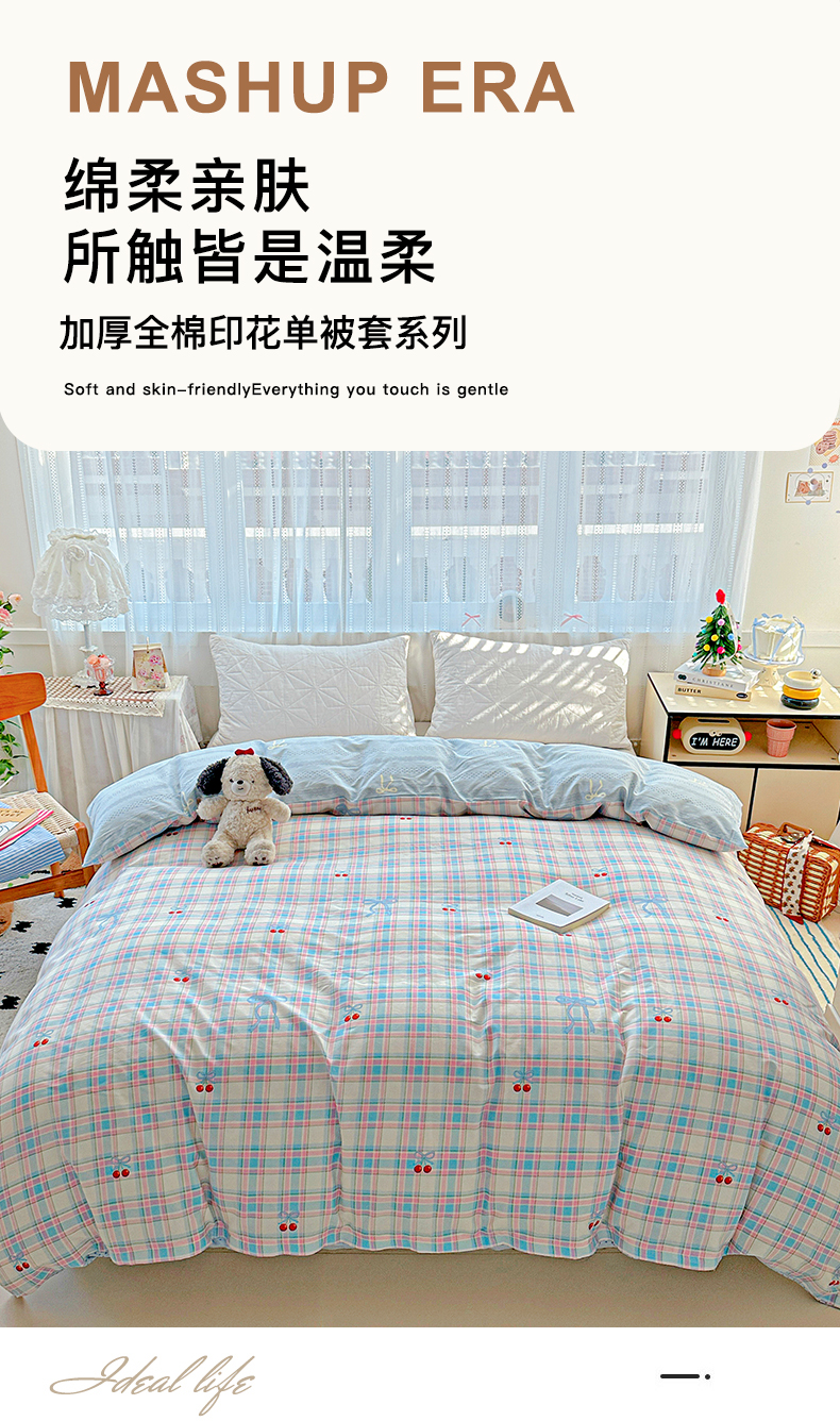 商品名称:恩泽家纺 2025新款全棉纯棉12868喷气印花系列被套单品被套单件单被套-第二批 樱桃派