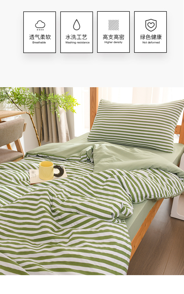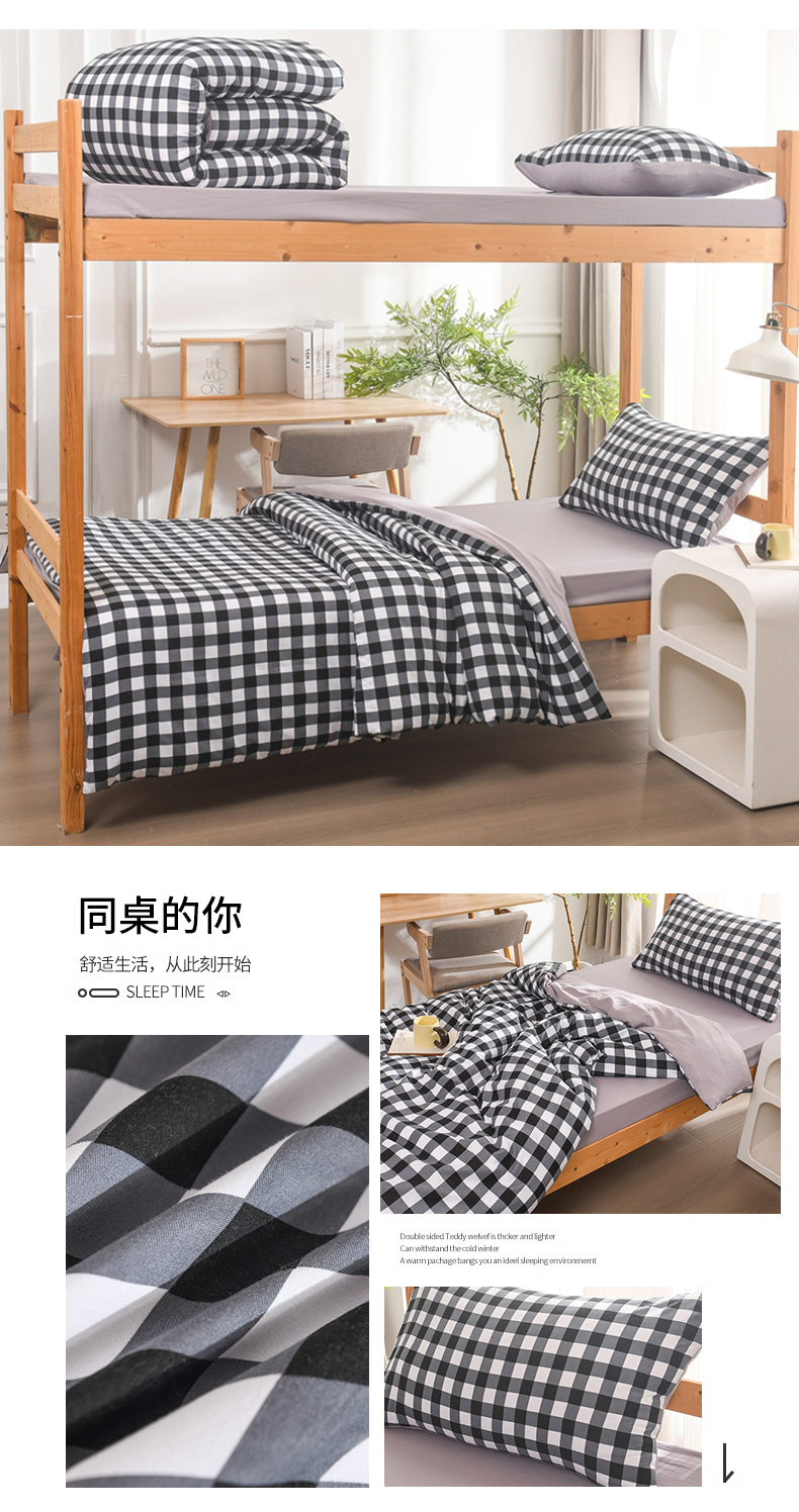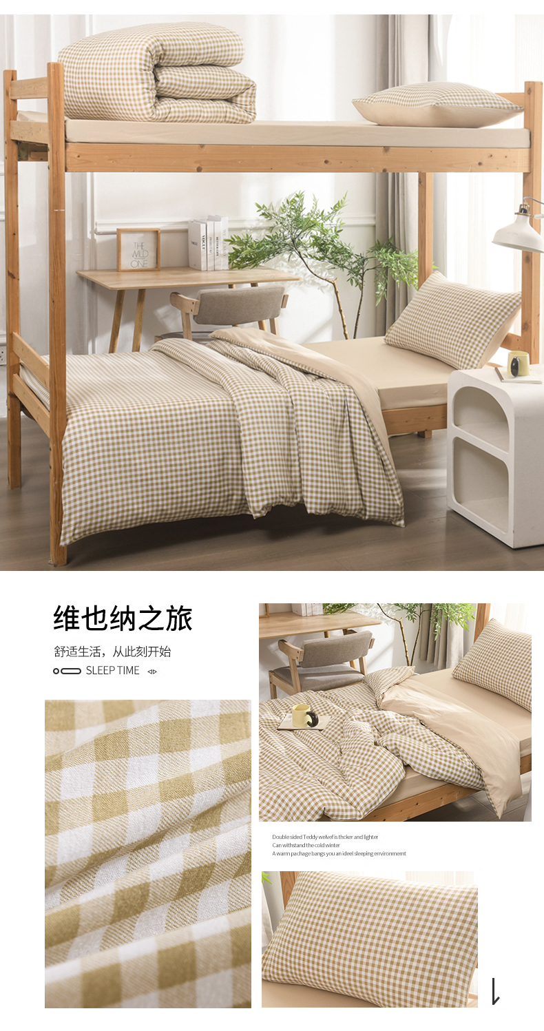 (总)2025新款无印风水洗棉学生三件套日系复古格子风宿舍四件套床单被套枕套床上用品套件