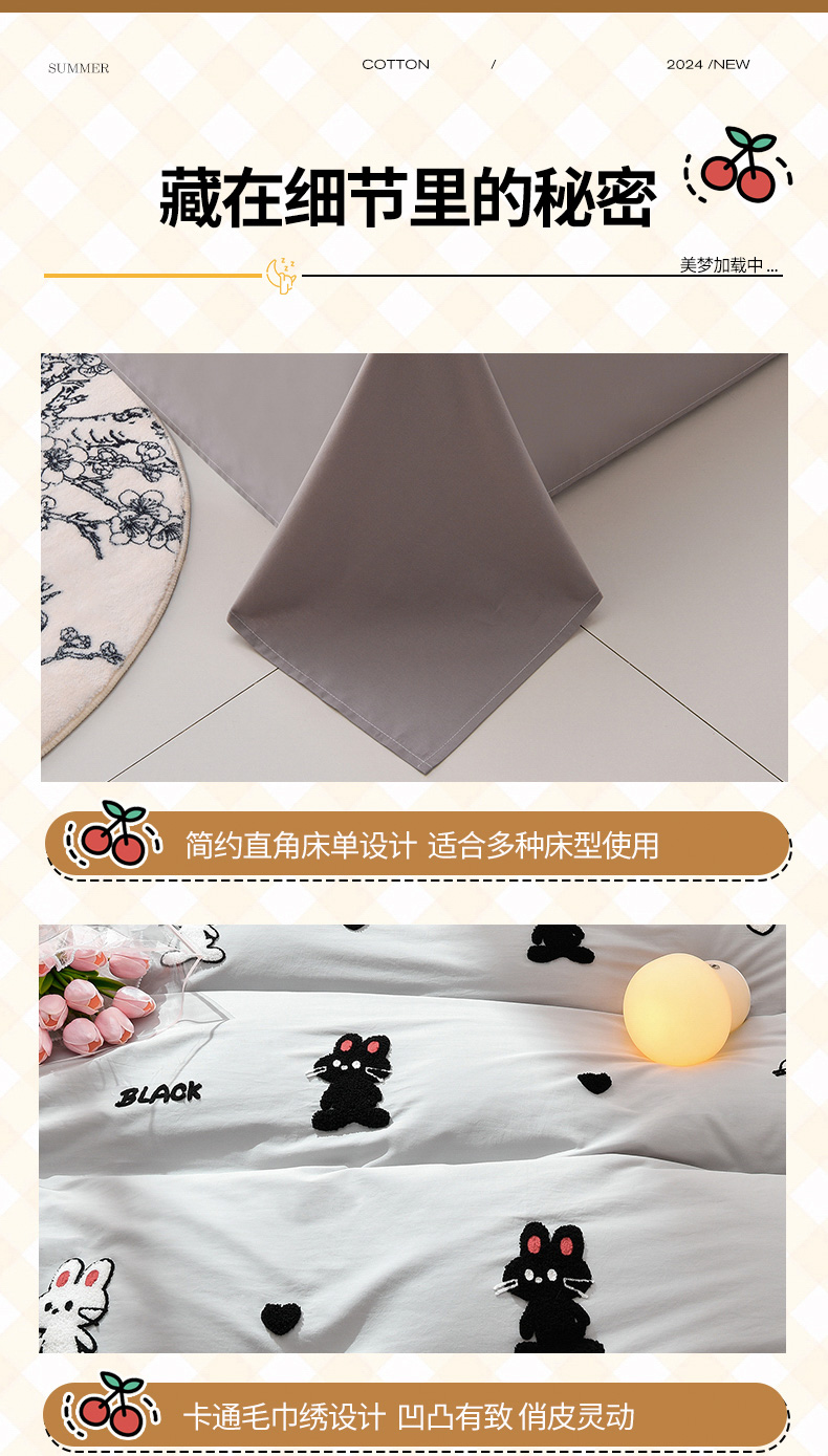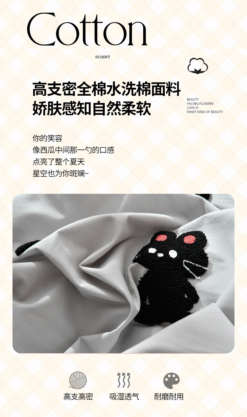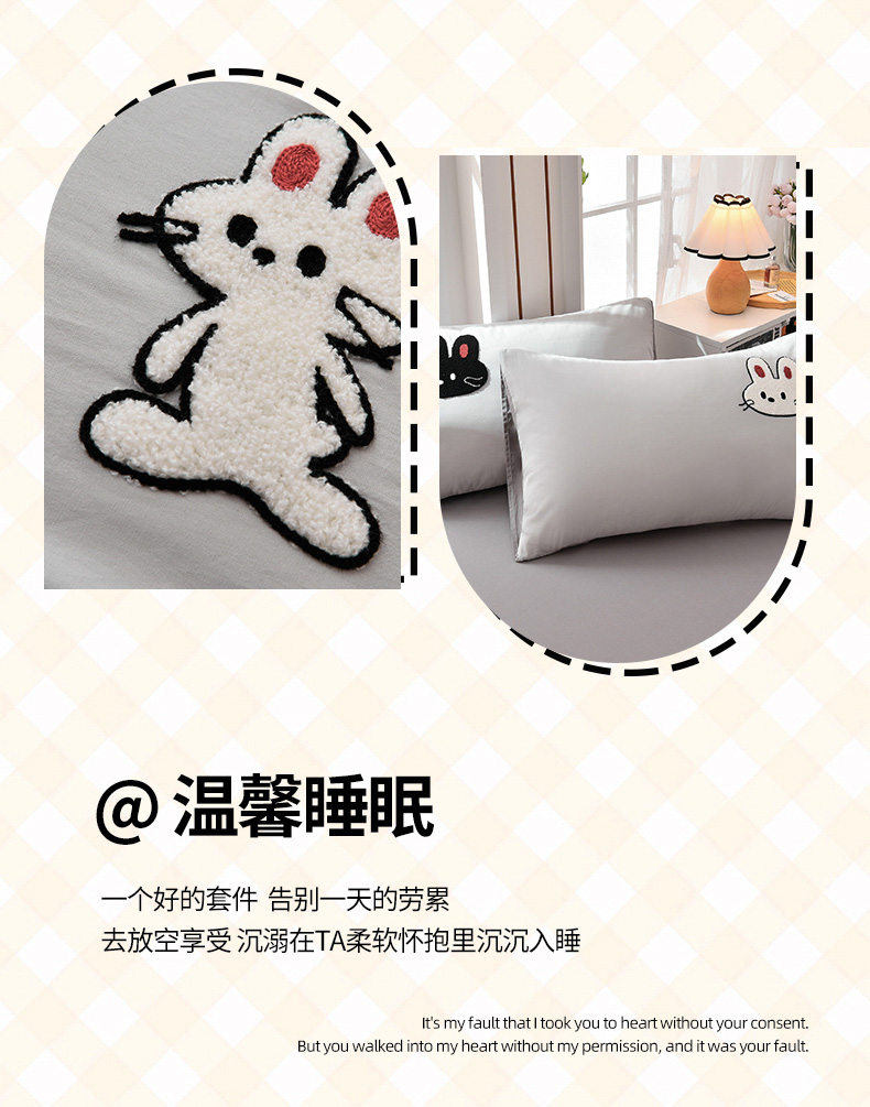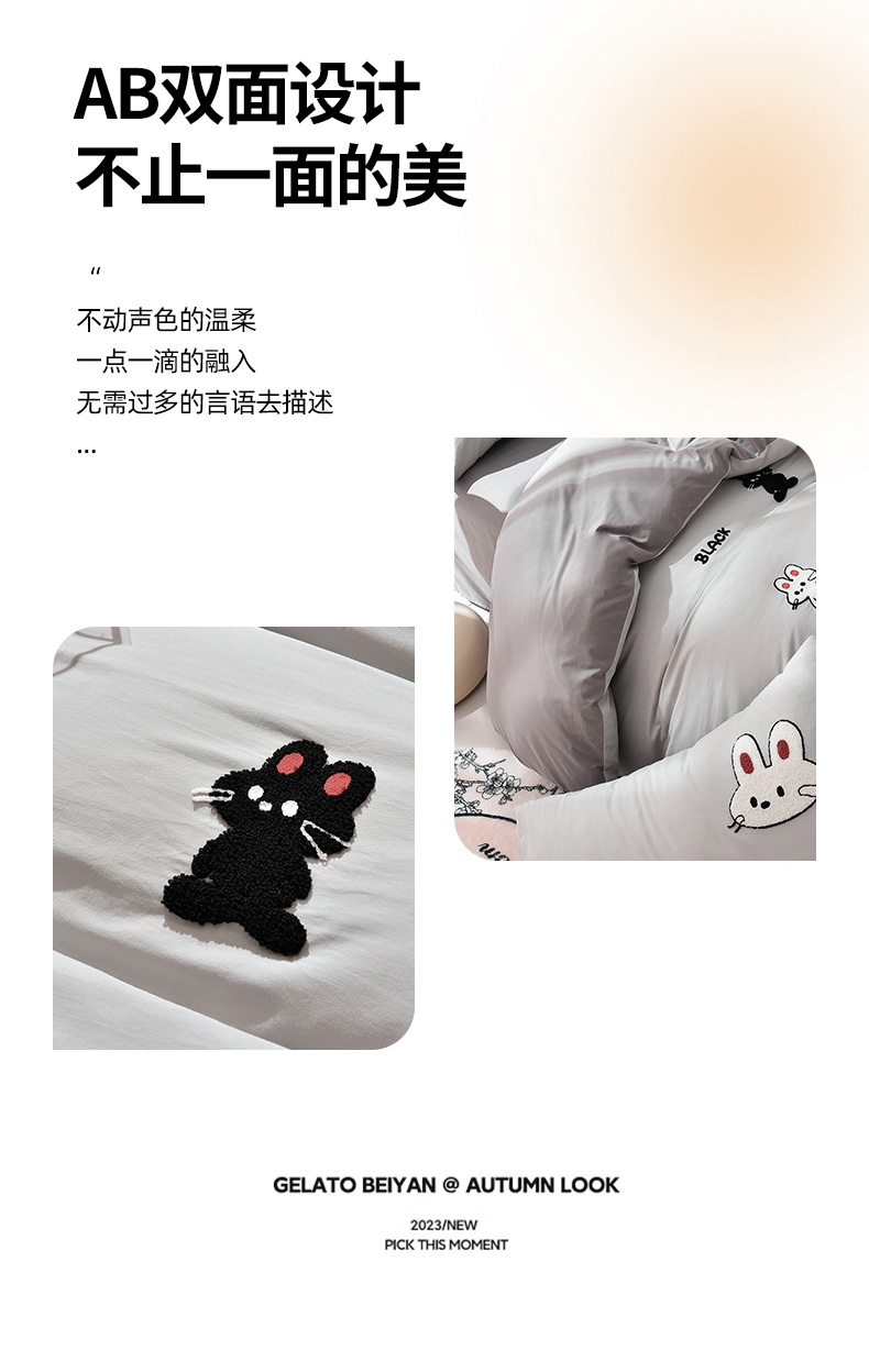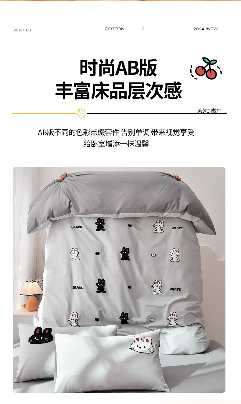 当前位置: 91家纺网 > 商品网购 > 床品套件 > 四件套 > 水洗棉四件套 > 炫拼家纺 2026新春款萌系A类全棉纯棉40支水洗棉毛巾绣四件套 黑白兔-灰