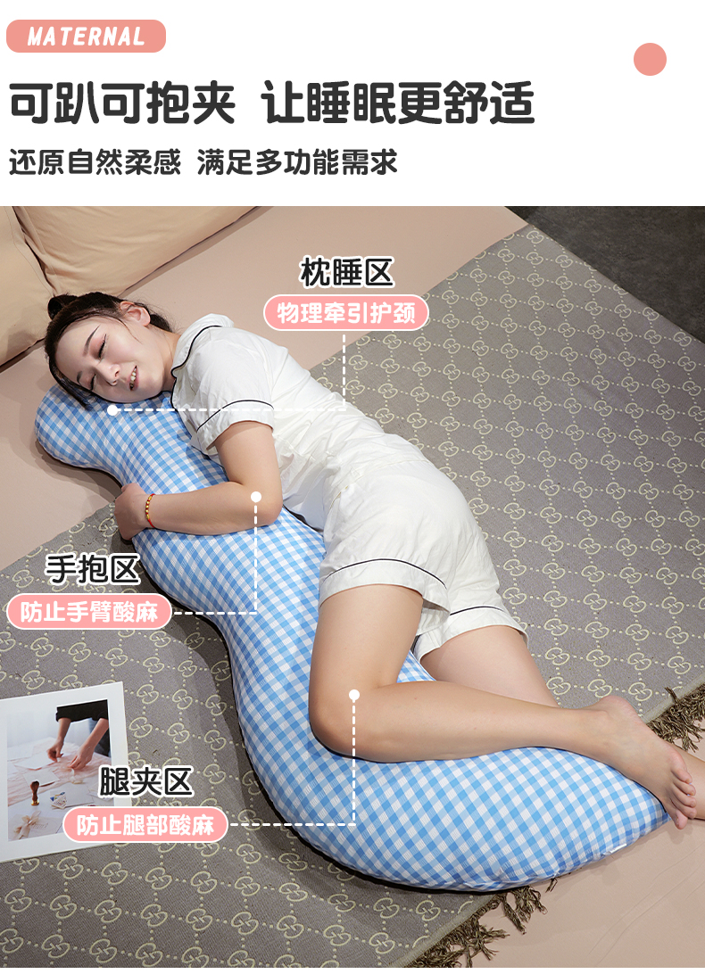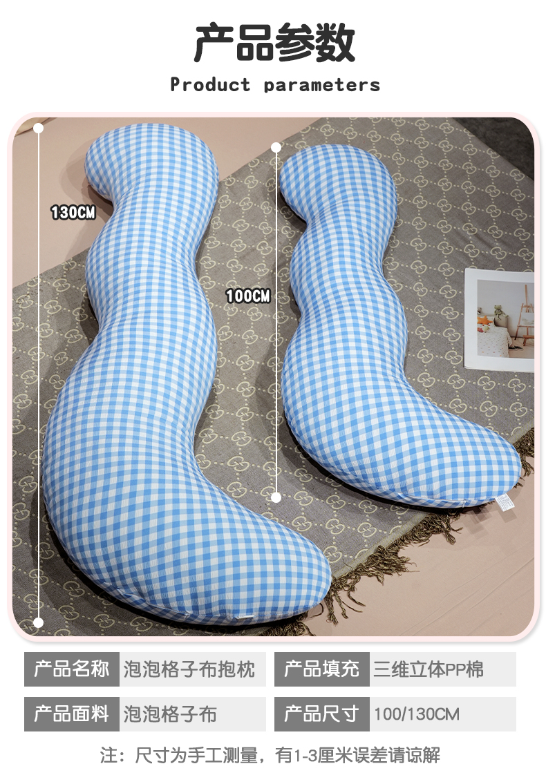 商品名称:仟亿莱 2025新款泡泡格子月牙长条抱枕枕头枕芯-格子月牙 黄色格子月牙