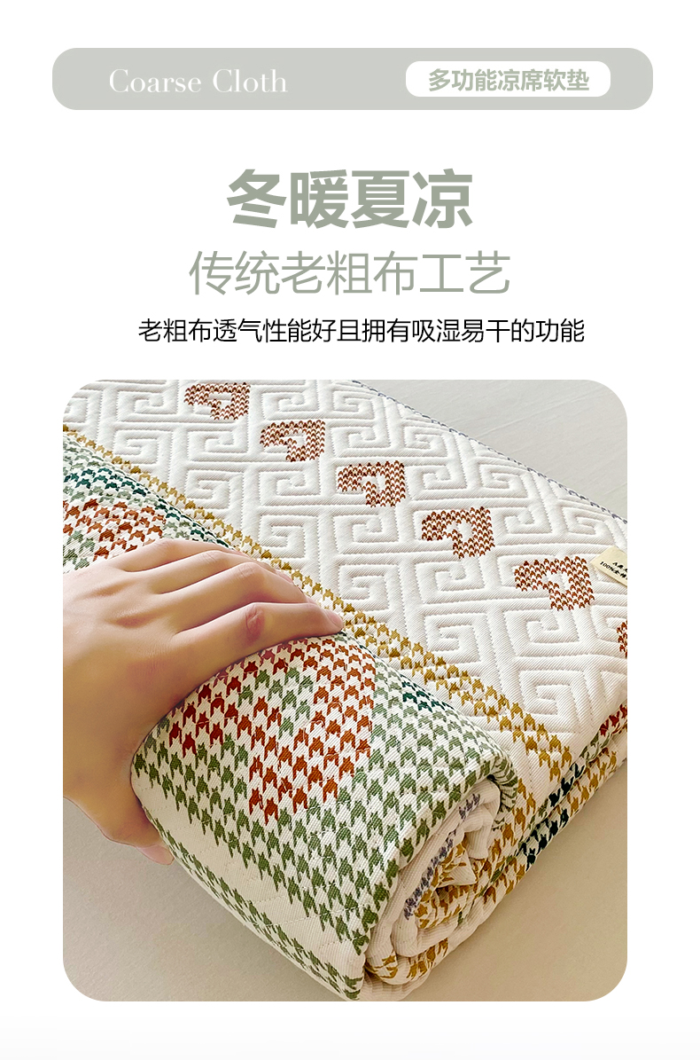 商品名称:(总)金鑫汇家纺 2025年新款A类多功能全棉老粗布软凉席床盖护垫席子可机洗