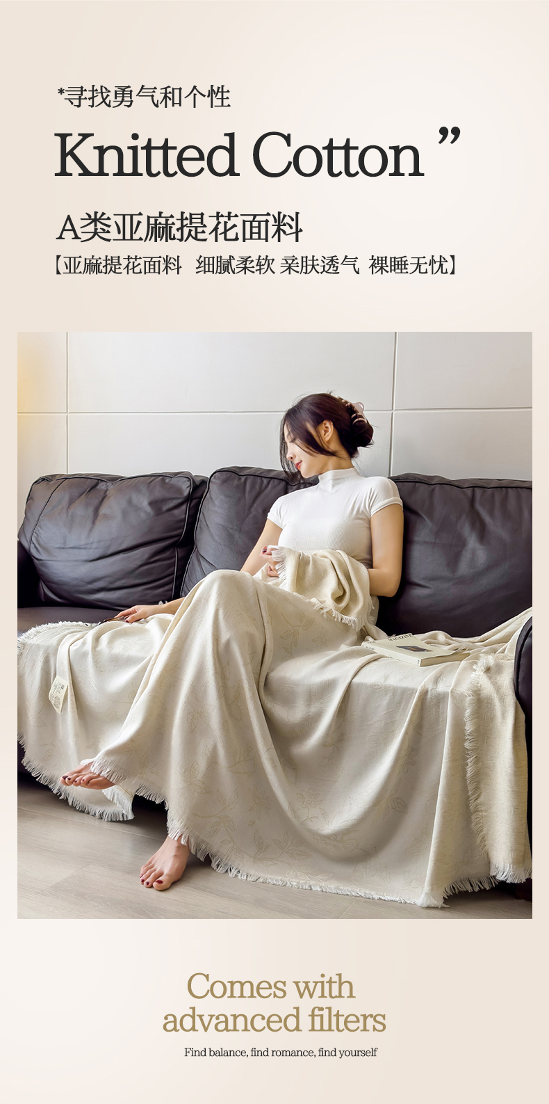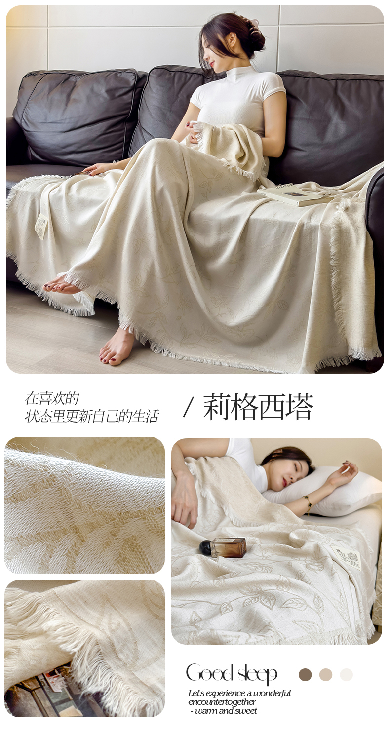 商品名称:米菲 2025新款A类亚麻提花多功能盖毯毯子毛毯 莉格西塔