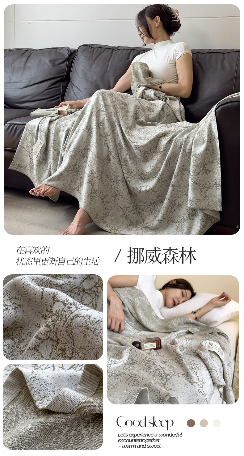 (总)米菲 2025新款A类亚麻提花多功能盖毯毯子毛毯,莉格西塔,迷雾花园,挪威森林,云若烟
