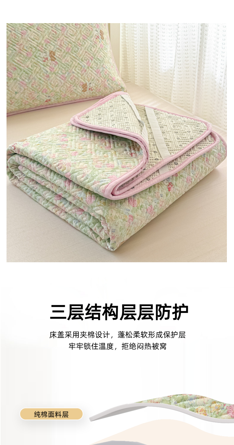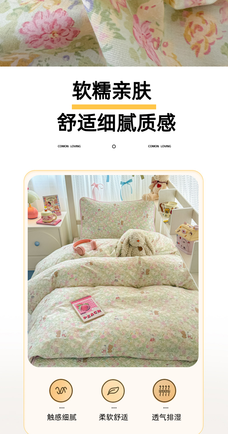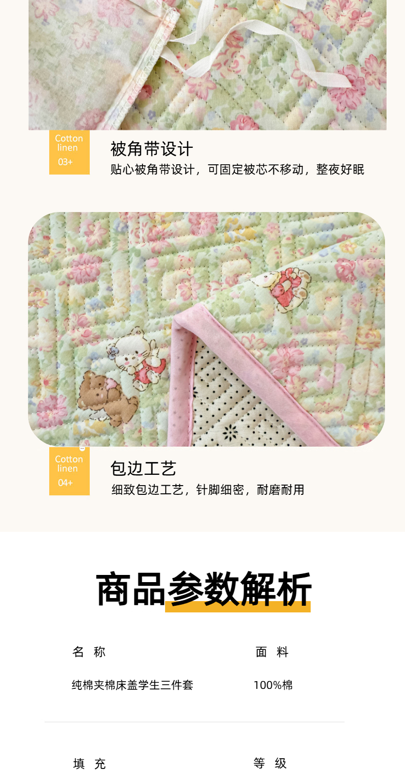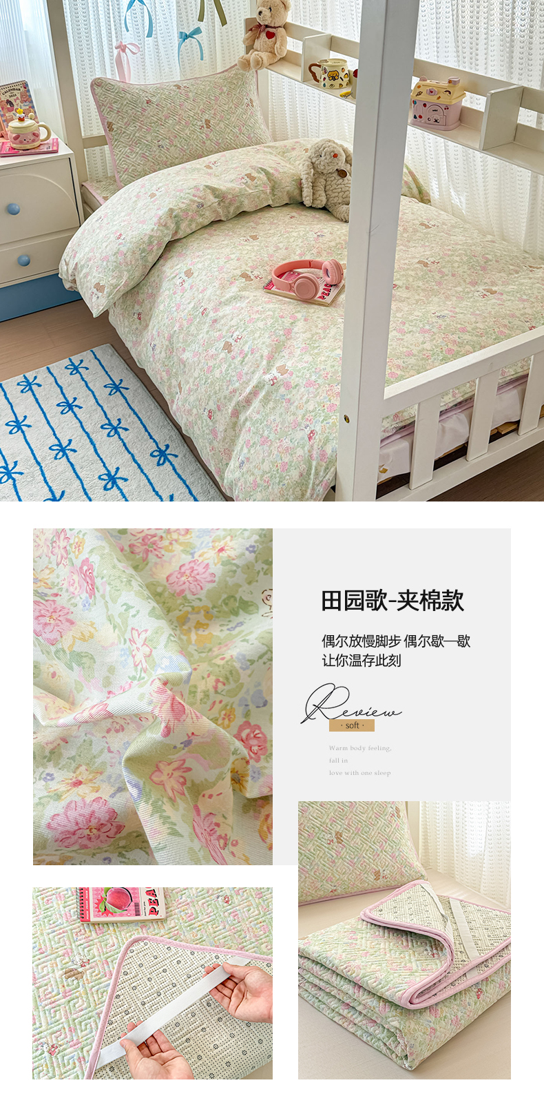 简宜家居(朝初家纺) 2025新款纯棉夹棉床盖学生三件套 田园歌 -平铺床盖