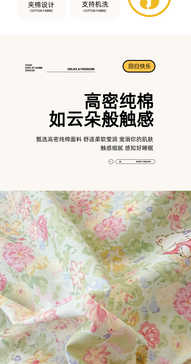 (总)简宜家居(朝初家纺) 2026新款全棉绗缝花边床盖四件套,幸福小兔,暖菊花兔,牵藤兔,素条花-粉,素条花-蓝,兔与花笺