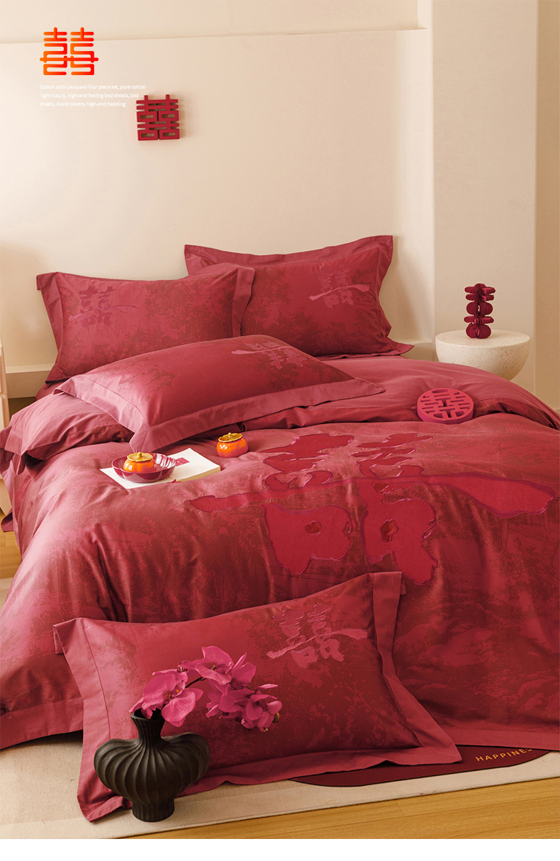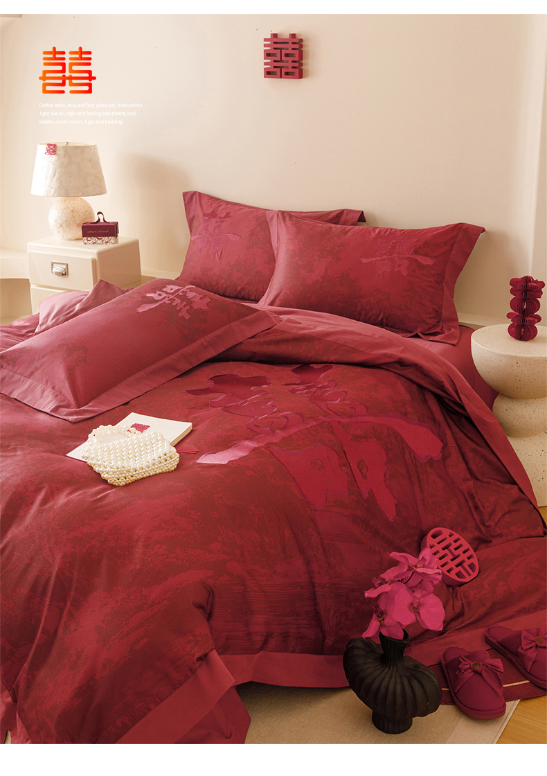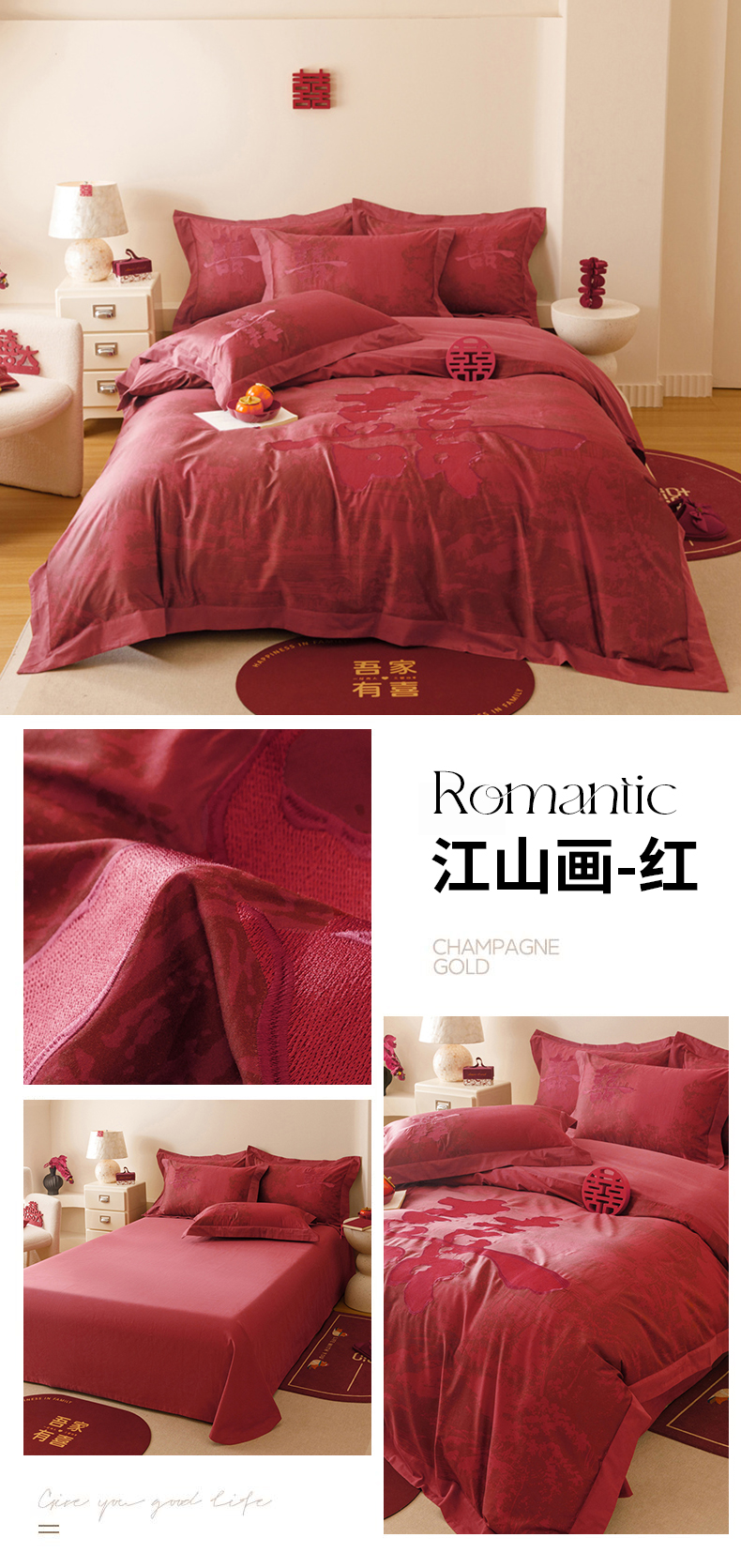 当前位置: 91家纺网 > 商品网购 > 床品套件 > 四件套 > 全棉普通四件套 > 宏羽纺家纺 2025新款100s全棉纯棉贡缎司马棉法式刺绣花边四件套-江山画-红