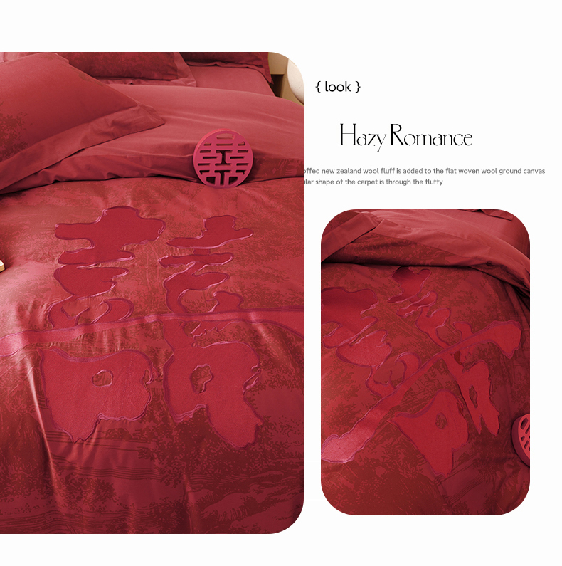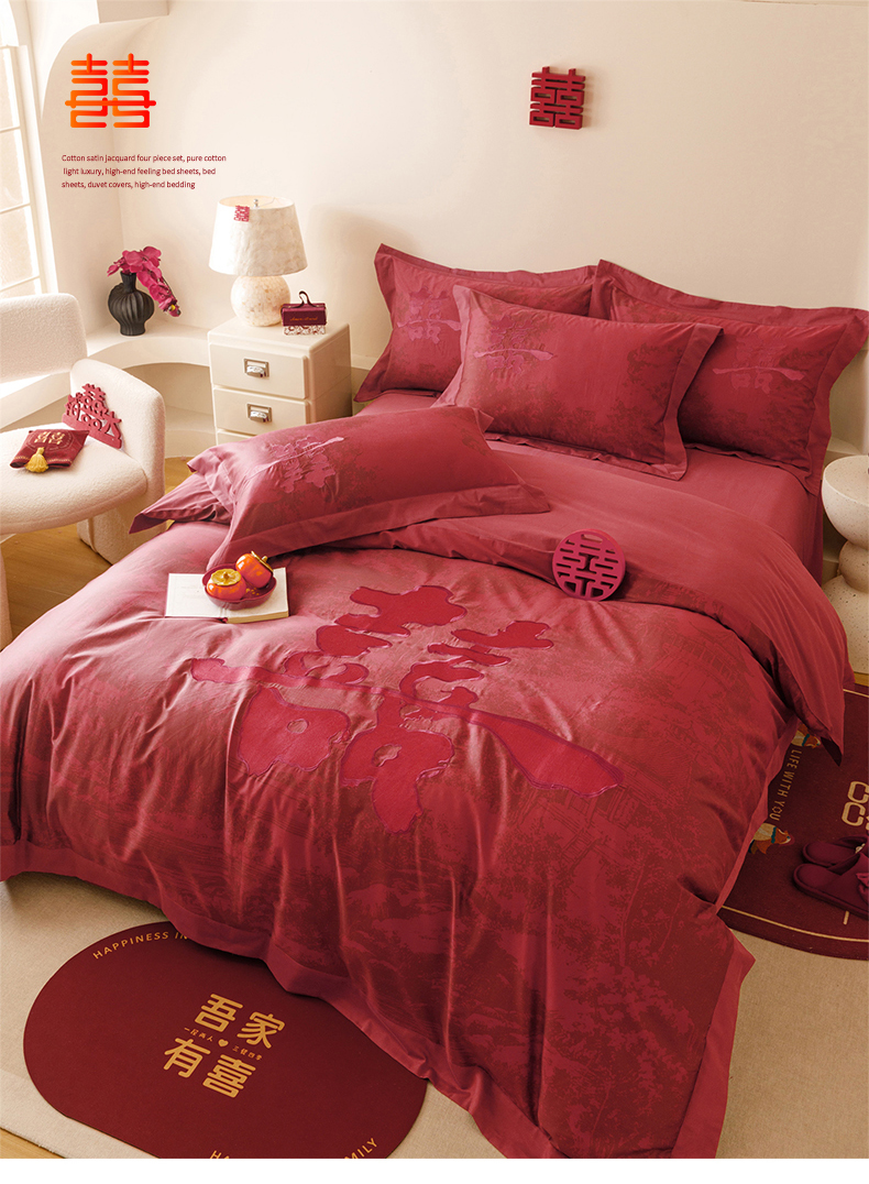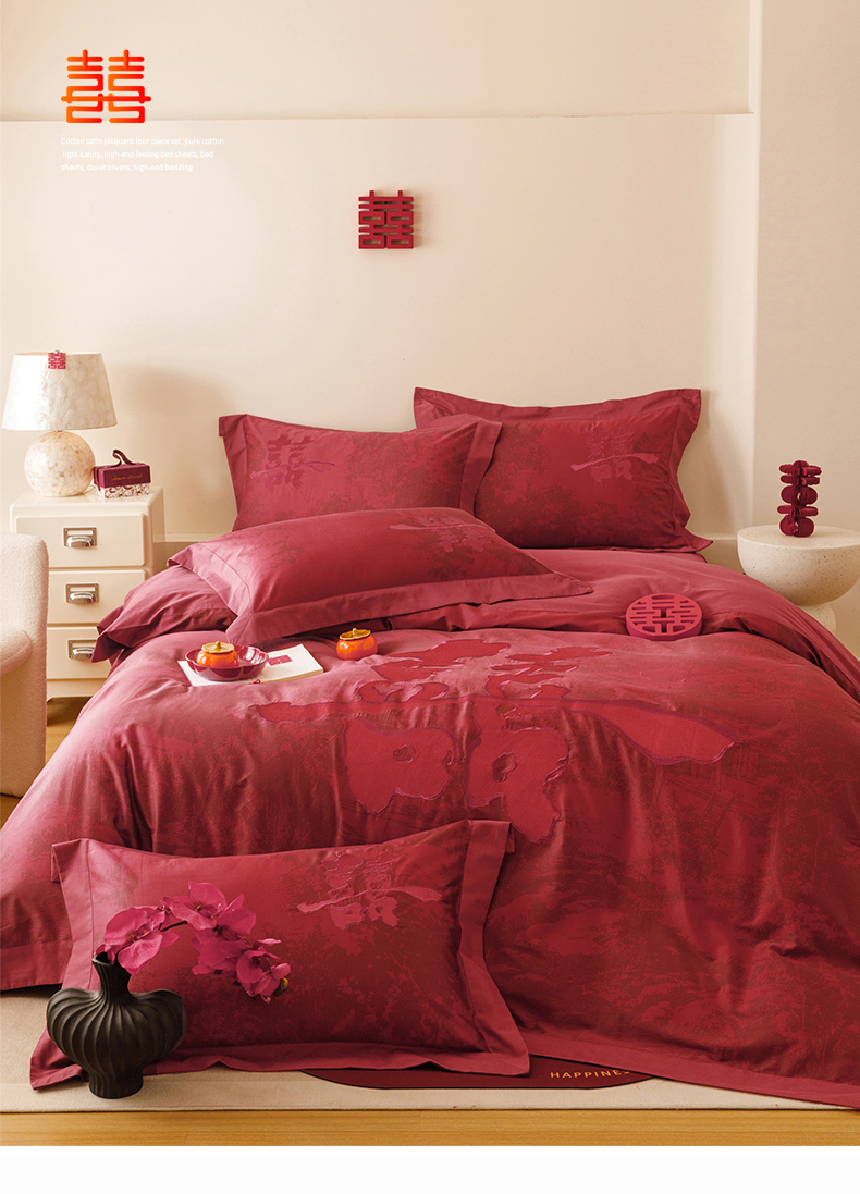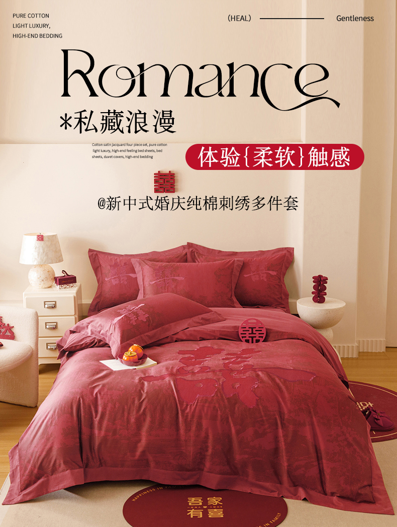 当前位置: 91家纺网 > 商品网购 > 床品套件 > 四件套 > 全棉普通四件套 > 宏羽纺家纺 2025新款100s全棉纯棉贡缎司马棉法式刺绣花边四件套-江山画-红
